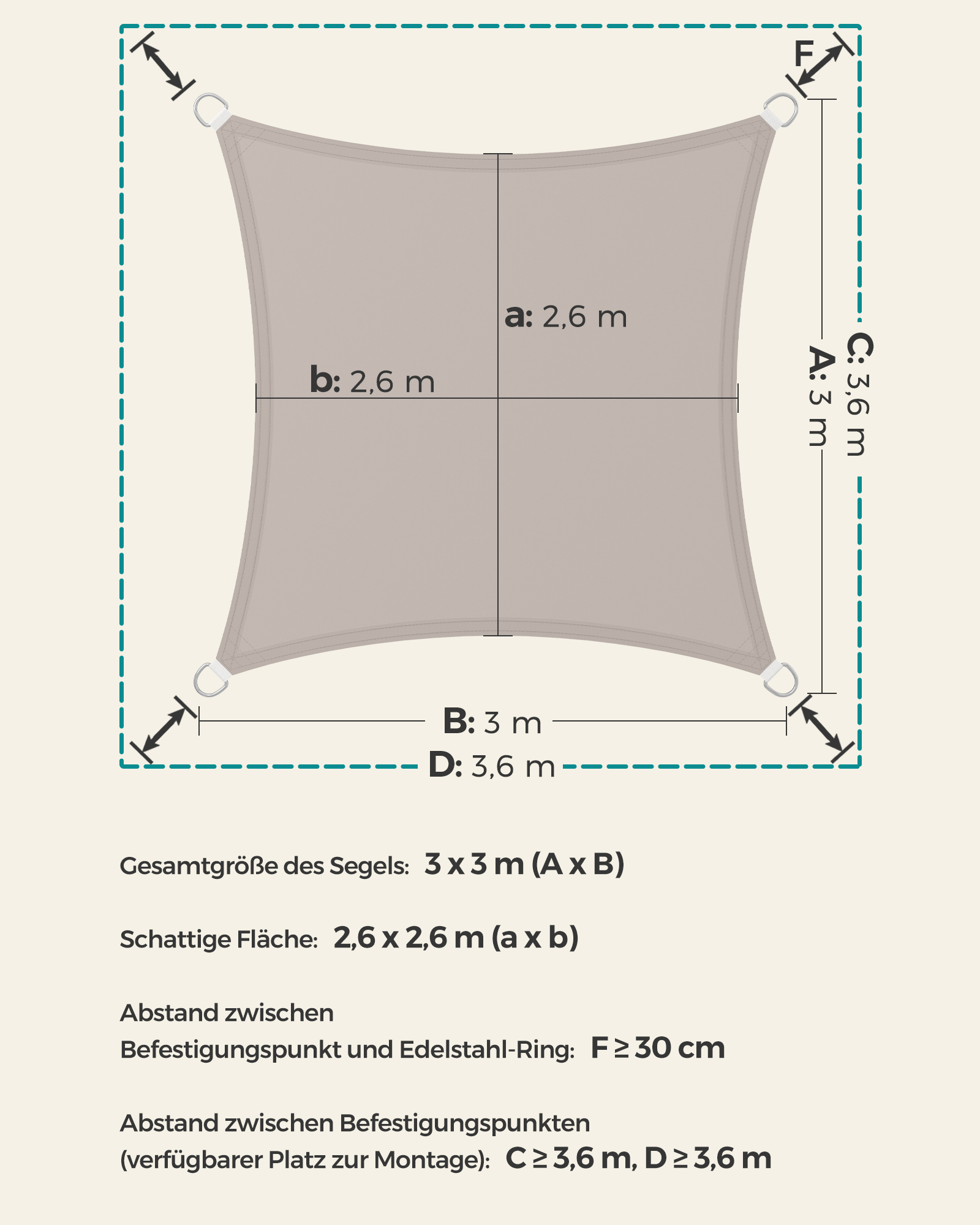 Material: 160 g/m² polyester fabric with PU coating, stainless steel ring