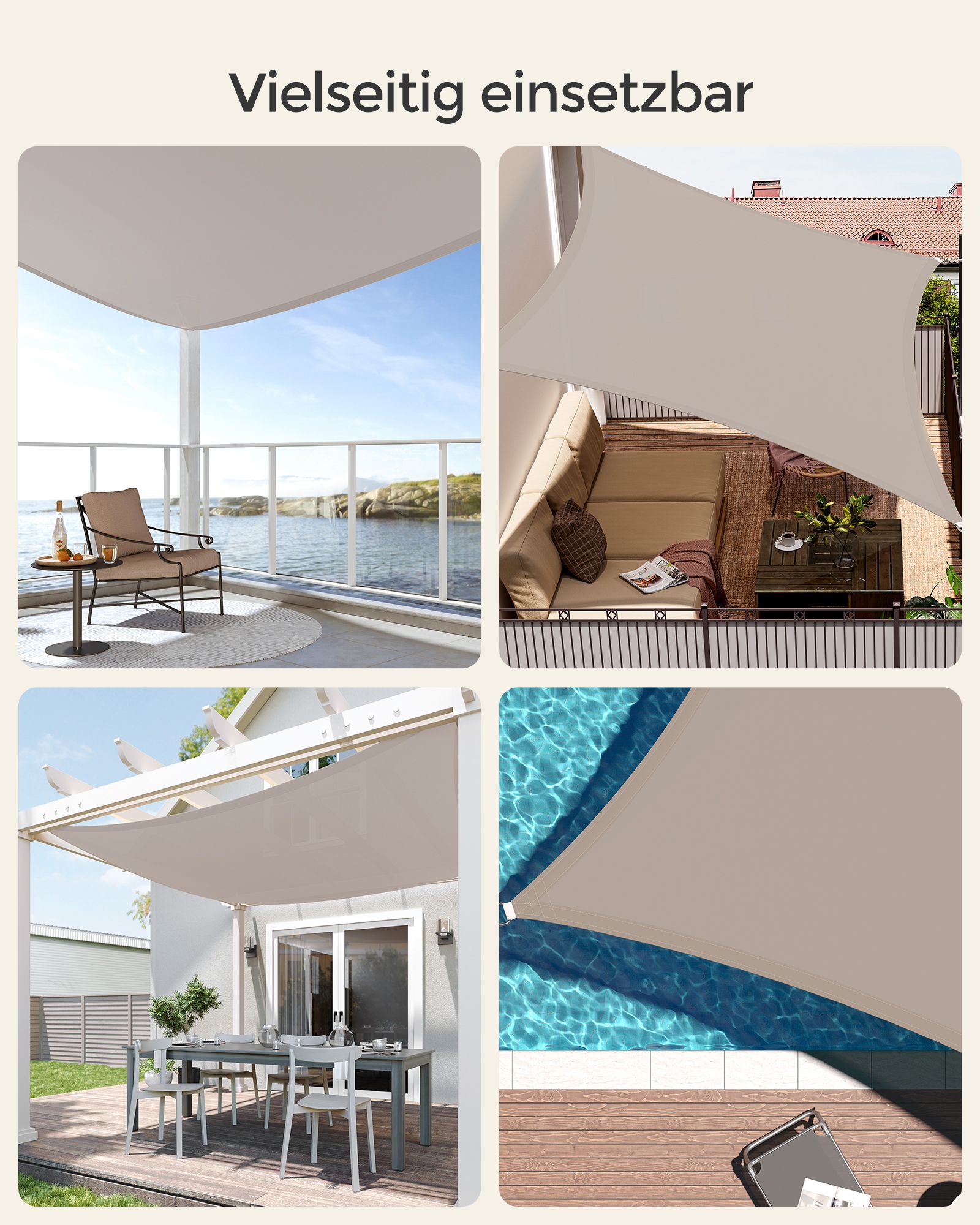 SONGMICS sun sail 3 x 4 m, waterproof with a water column of 665 mm, sun protection made of tear-resistant polyester, 93% UV protection, patio, garden, balcony, rectangular, 2 m ropes