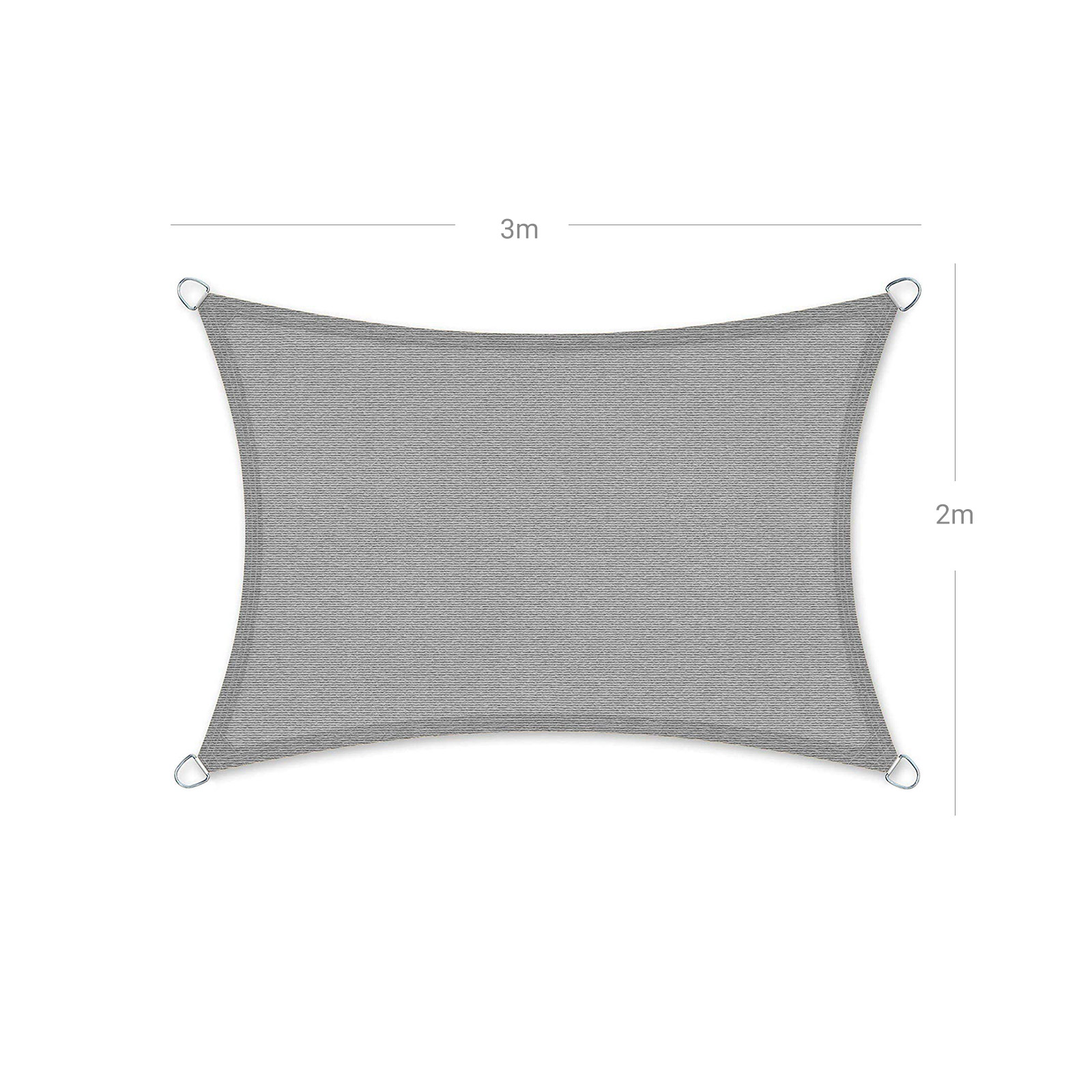 How to attach the sun sail: Spread out the sun sail in the place where you need sun protection. Then find 4 fixed points to which you want to attach the ropes. These are 2 m long, so find trees, posts, or other stable objects within this radius. Then attach the ropes to the fixing points and to the sturdy loops and stainless steel rings on the sun sail so that the tarpaulin can be stretched taut with an angle of inclination of at least 20 degrees. This ensures that rainwater runs off perfectly. Where is this sunshade suitable for use? Do you have 4 attachment points and enough space for the 2 x 3 m sail? Then this is the perfect place for your new sunshade, whether on the campsite in front of your caravan, in your garden, or over your swimming pool.Product details: Color: Smoke gray Material: High-density polyethylene (HDPE/180 g/m²) Size: 2 x 3 m Weight: 1.3 kg Scope of delivery: 1 x sun sail 4 x fastening rope SONGIMC notes: Please tilt the fabric by 20 degrees to allow rainwater to drain smoothly.Please store the sun shade in a protected place during strong winds, storms, or in winter. Clean the shade with a mild detergent or water. Do not use a brush with hard bristles or chemical liquids. Not suitable for machine washing! Please make sure not to hang the shade upside down.