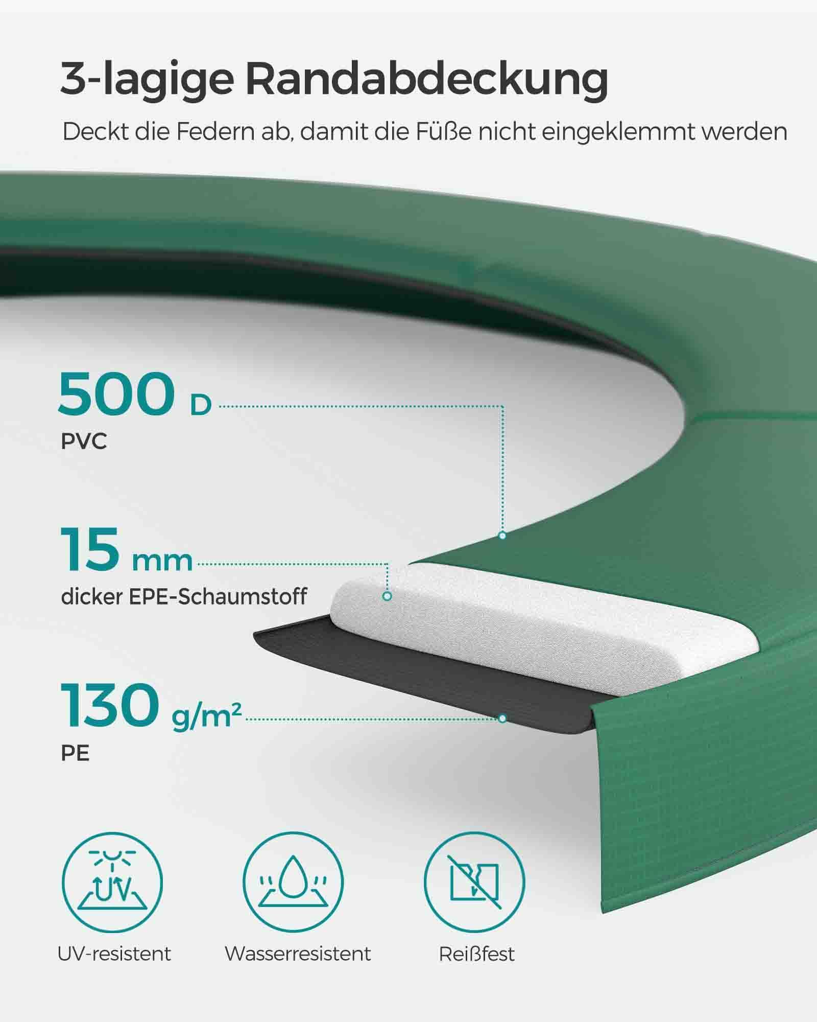 SONGMICS Trampoline 366 cm, round garden trampoline with safety net and ladder, padded frame, for children and adults, inner net, TÜV certificate, GS,