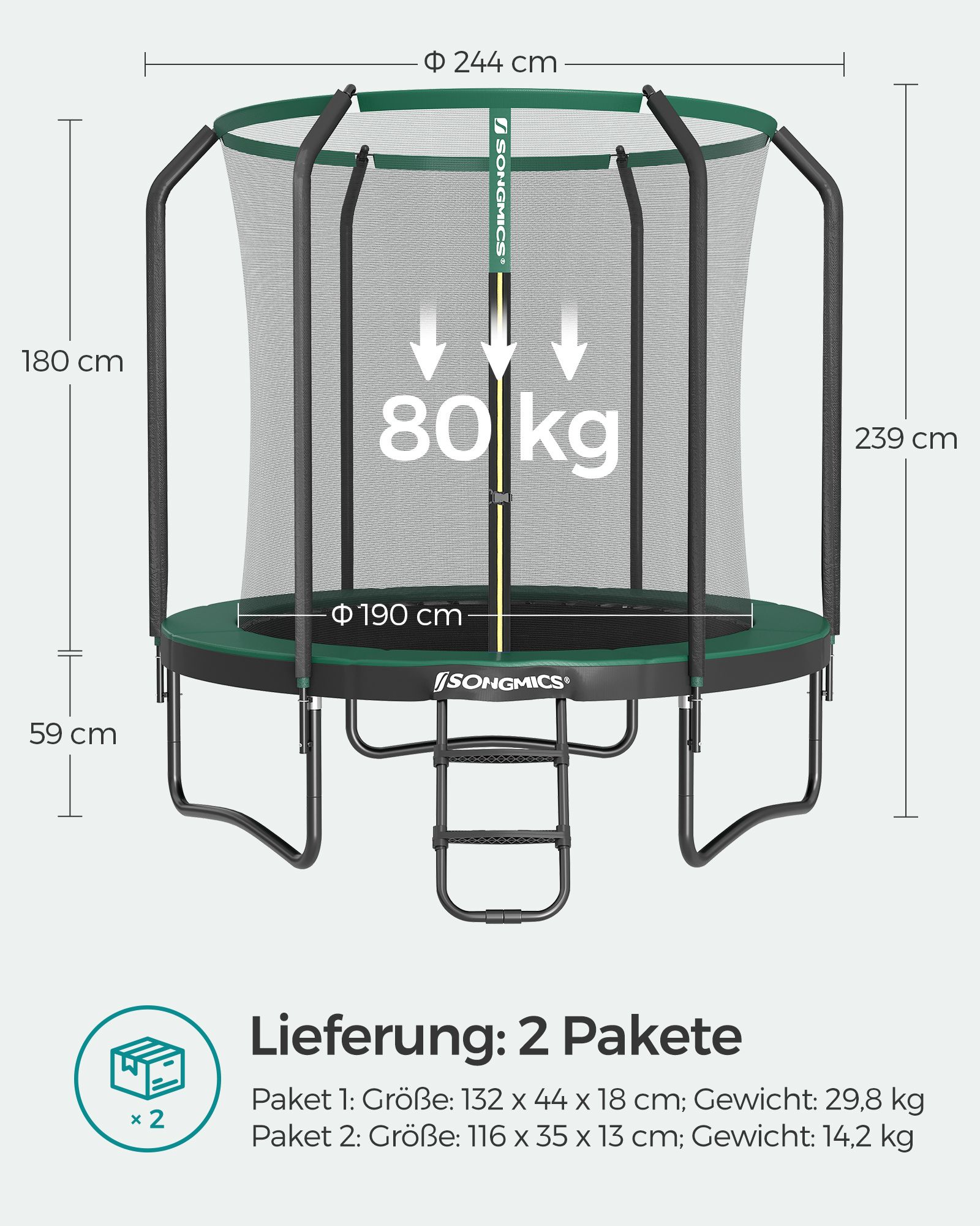 Diameter of jumping area: 190 cm