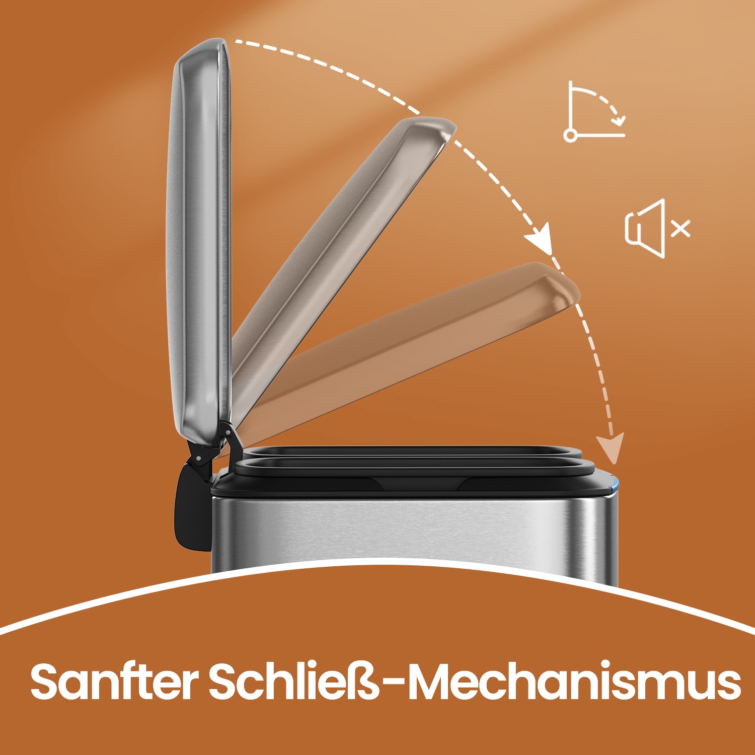 Recycling can also be easy: this pedal bin with 2 separate compartments makes it easy to sort your waste, e.g., residual waste and organic waste. All you have to do is press the pedal and throw the waste into the inner bucket. You don’t even have to touch the trash can with your hands, which ensures hygiene. A “puppy- and child-proof” trash can: Does your dog often rummage through the trash can? Do your little ones often reach into the open bin? If so, you’ll definitely want to put a stop to that. That’s where our pedal bin comes in! The lid only opens when you press the pedal. Product details: Color: Silver Size: 44.5 x 36 x 60 cm (L x W x H) Inner bin size: 19 x 28.5 x 50 cm (L x W x H) Total height (with lid open): 92 cm Weight: 7.1 kg Scope of delivery: 1 x trash can SONGIMC Notes: To clean the product, please wipe it with a soft, damp cloth and use mild cleaning agents if necessary.