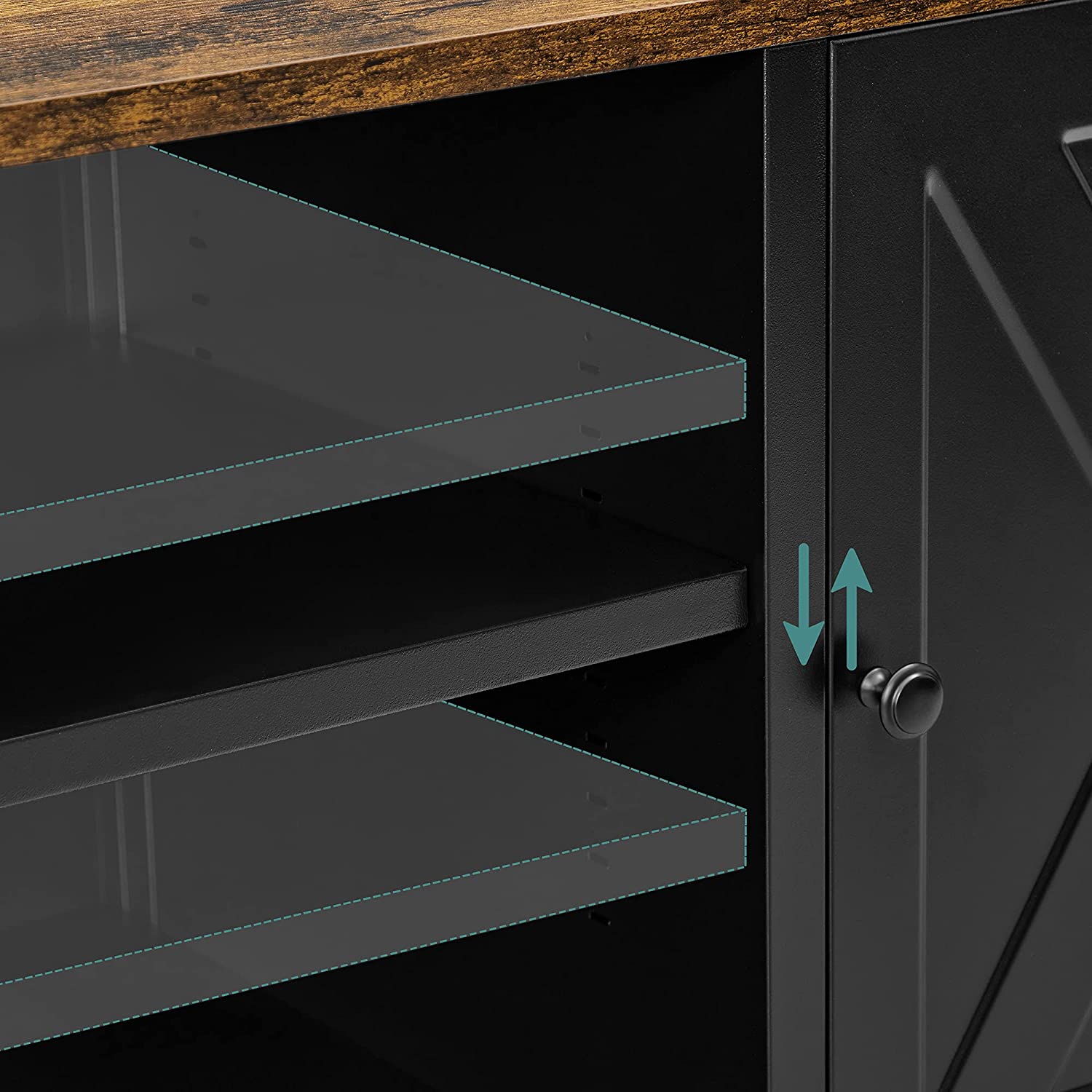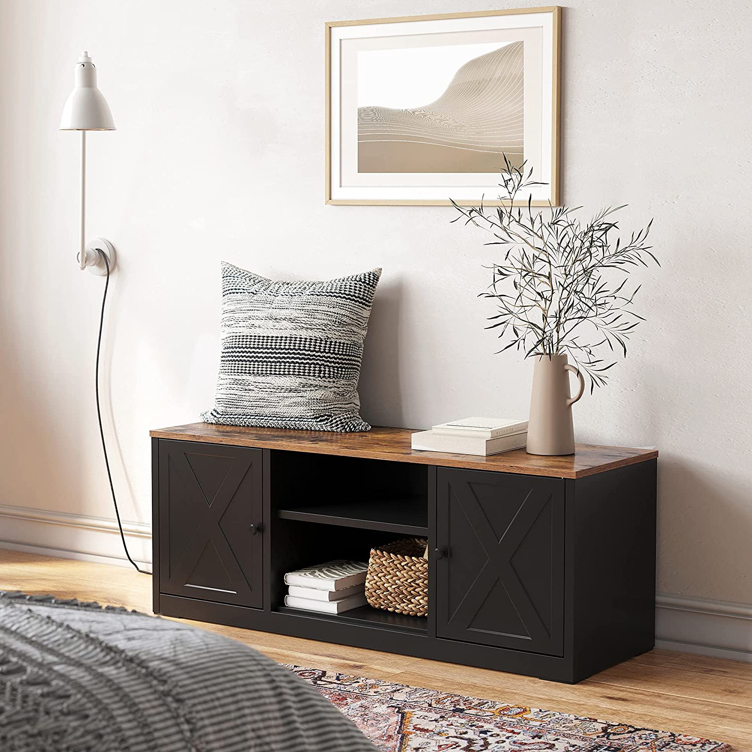 Product details: Color: Vintage brown-black Material: Chipboard, steel Size: 120 x 40 x 46 cm (L x W x H) Weight: 22.2 kg Max. static load capacity of the tabletop: 50 kg Max. static load capacity per shelf: 20 kg Scope of delivery: 1 x TV table 1 x accessory package 1 x anti-tip device 1 x instructions