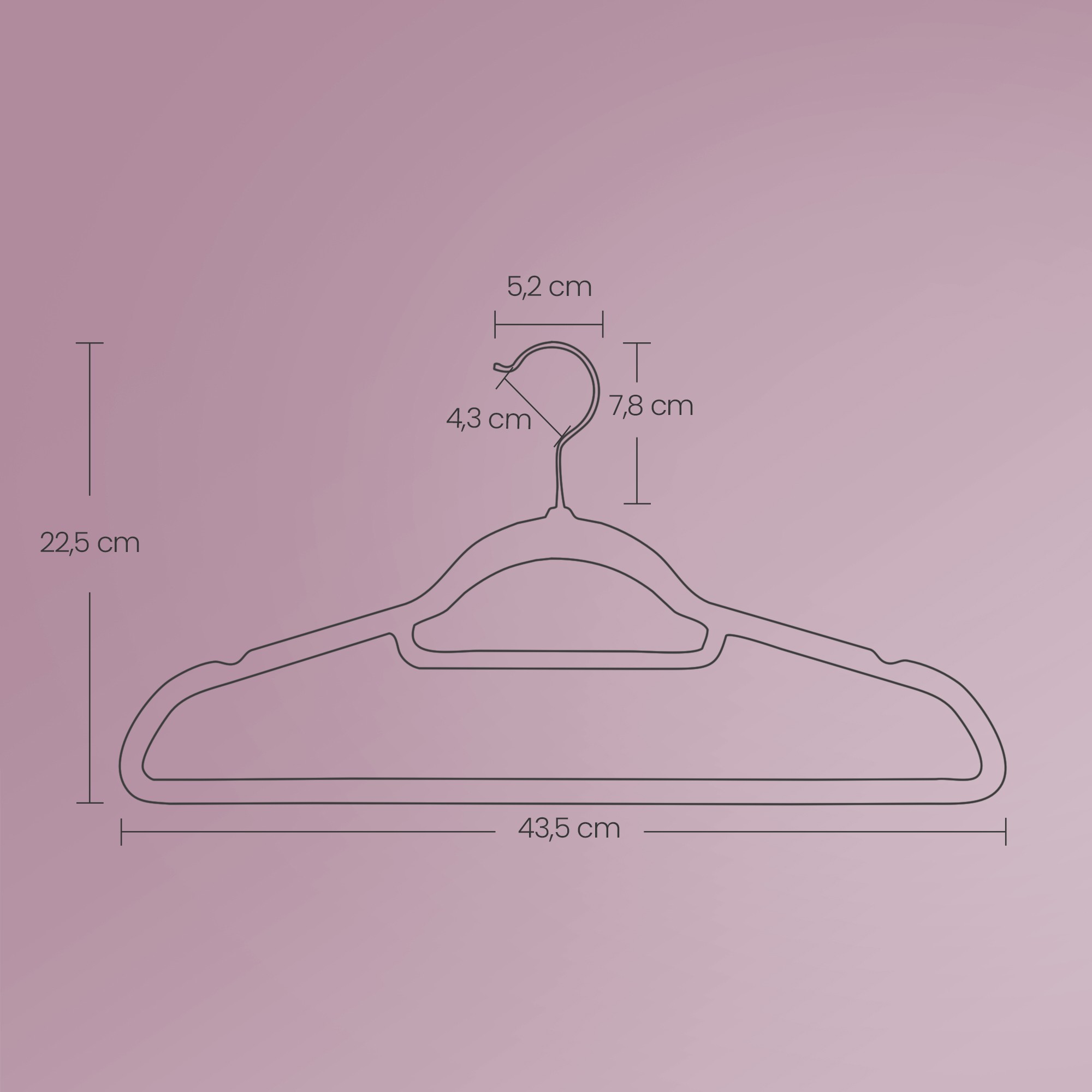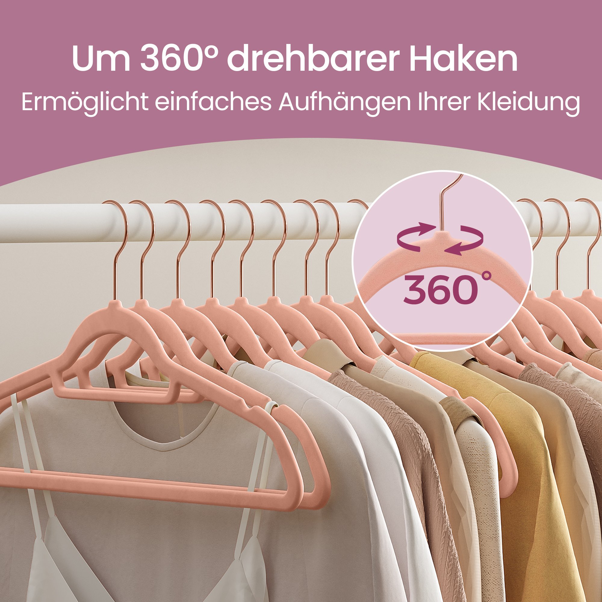 Product details: Color: Pink, rose gold hooks Material: Velvet, ABS plastic, metal hooks Size per hanger: 45 x 0.6 x 23.5 cm (L x W x H) Weight per hanger: 78 g Max. static load capacity per hanger: 5 kg Scope of delivery: 50 x velvet hangers SONGMICS Notes: Please do not hang wet clothes on the hangers. Keep the hangers away from sources of heat and ignition.Do not use the hangers in environments with high temperatures or high humidity. Do not hang items that are too heavy on the hangers. Please do not use these hangers in a portable clothes dryer.