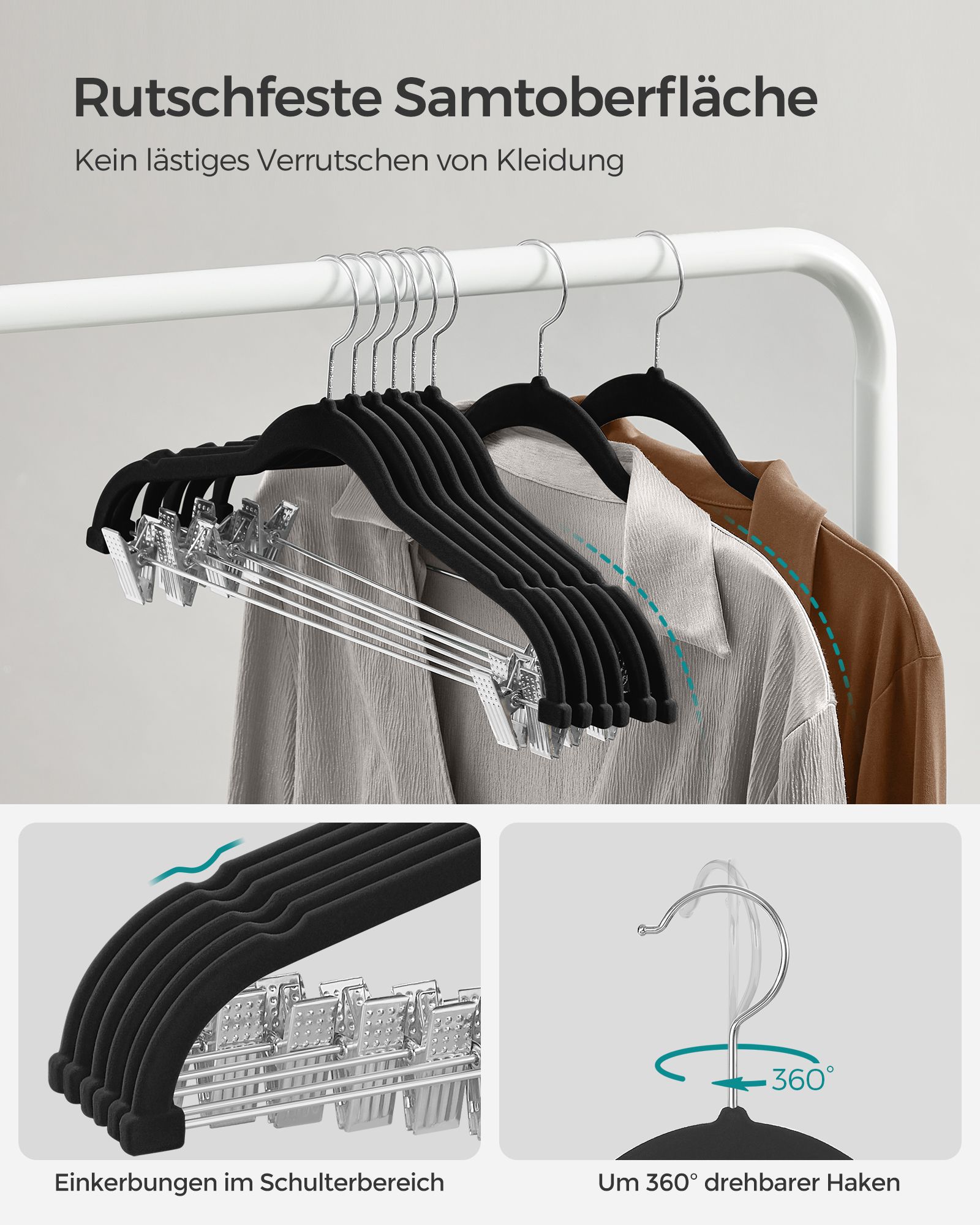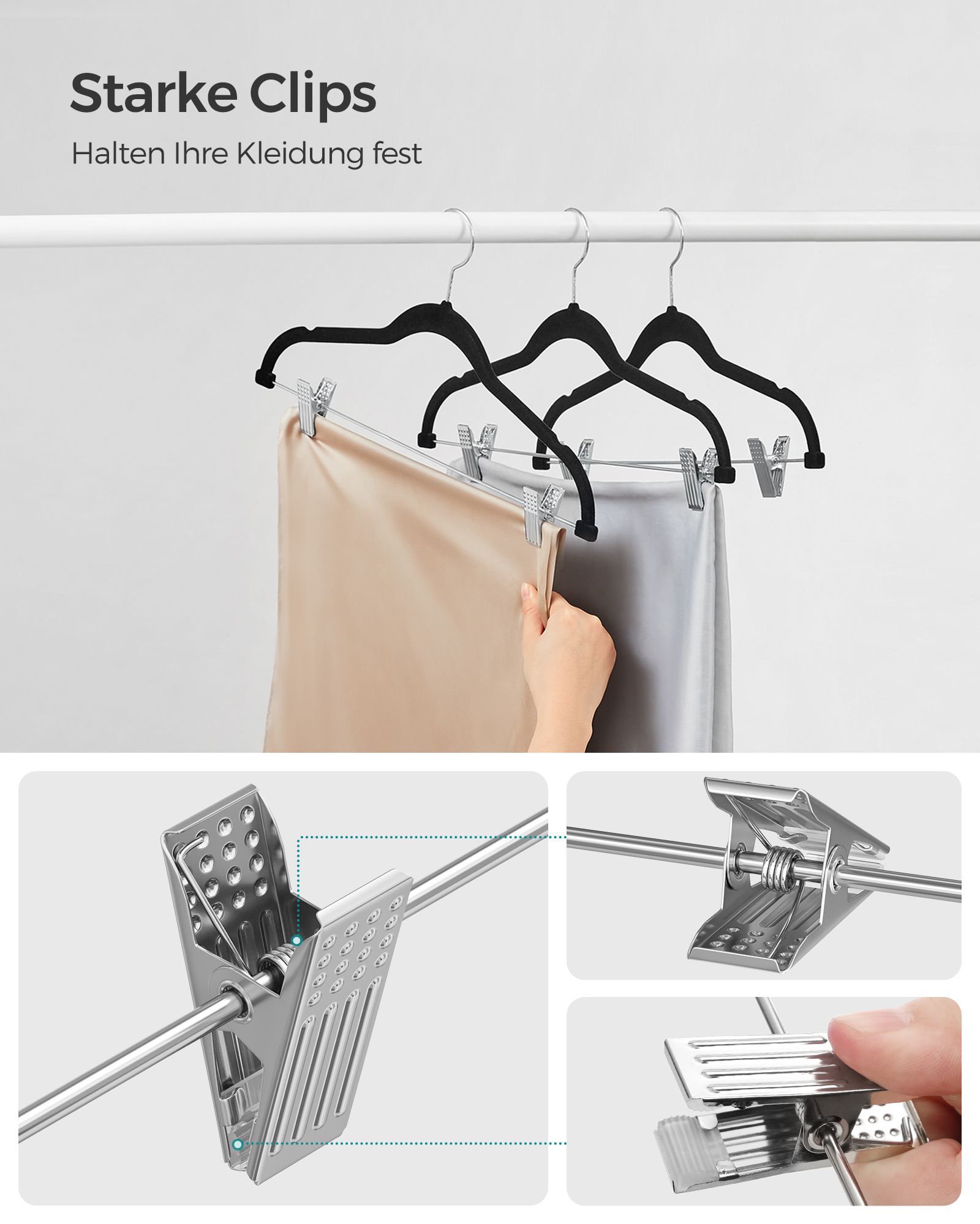 Max. static load capacity per trouser clip: 2.5 kg