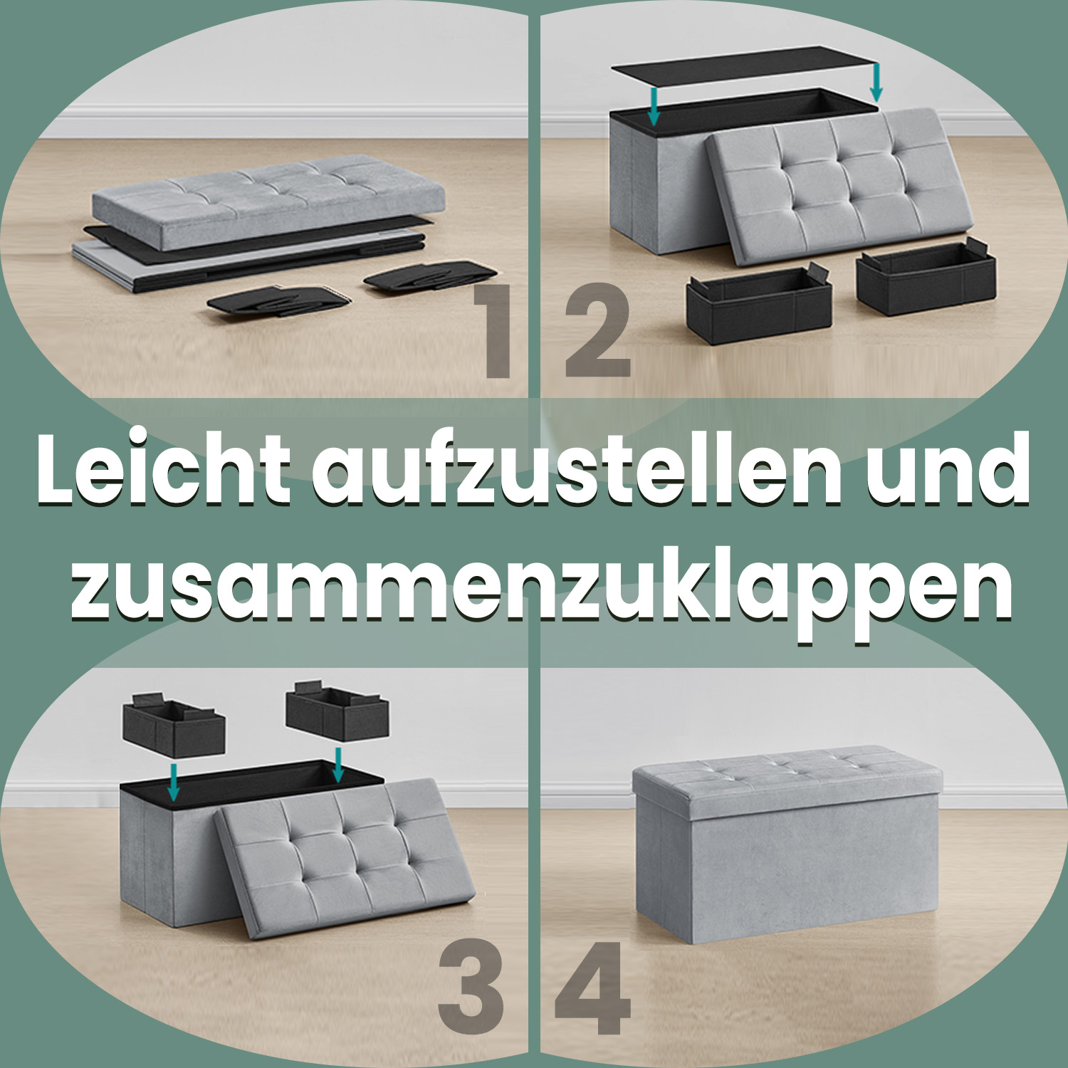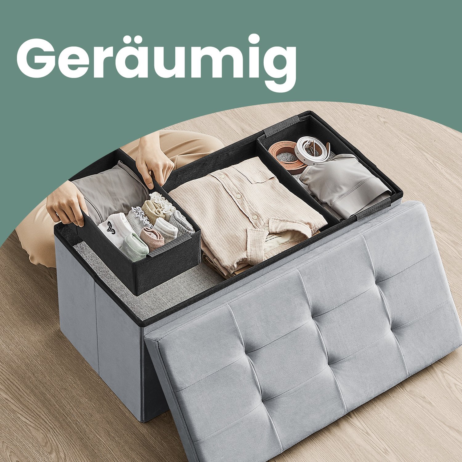 Storage stool, bench, 38 x 110 x 38 cm, foldable, footstool, load capacity up to 300 kg, for living room, bedroom, hallway, slate gray