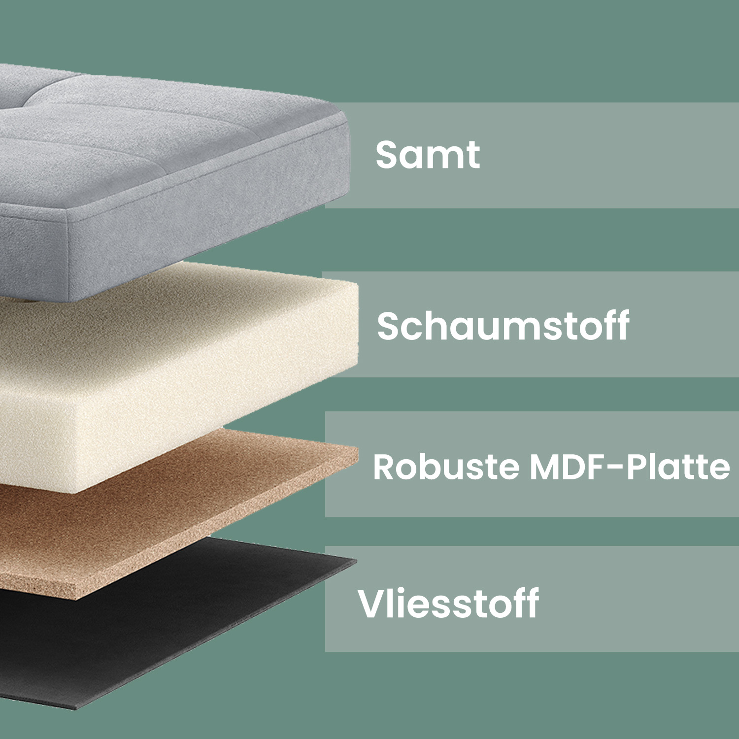 – Material: MDF (medium-density fiberboard), velvet, foam