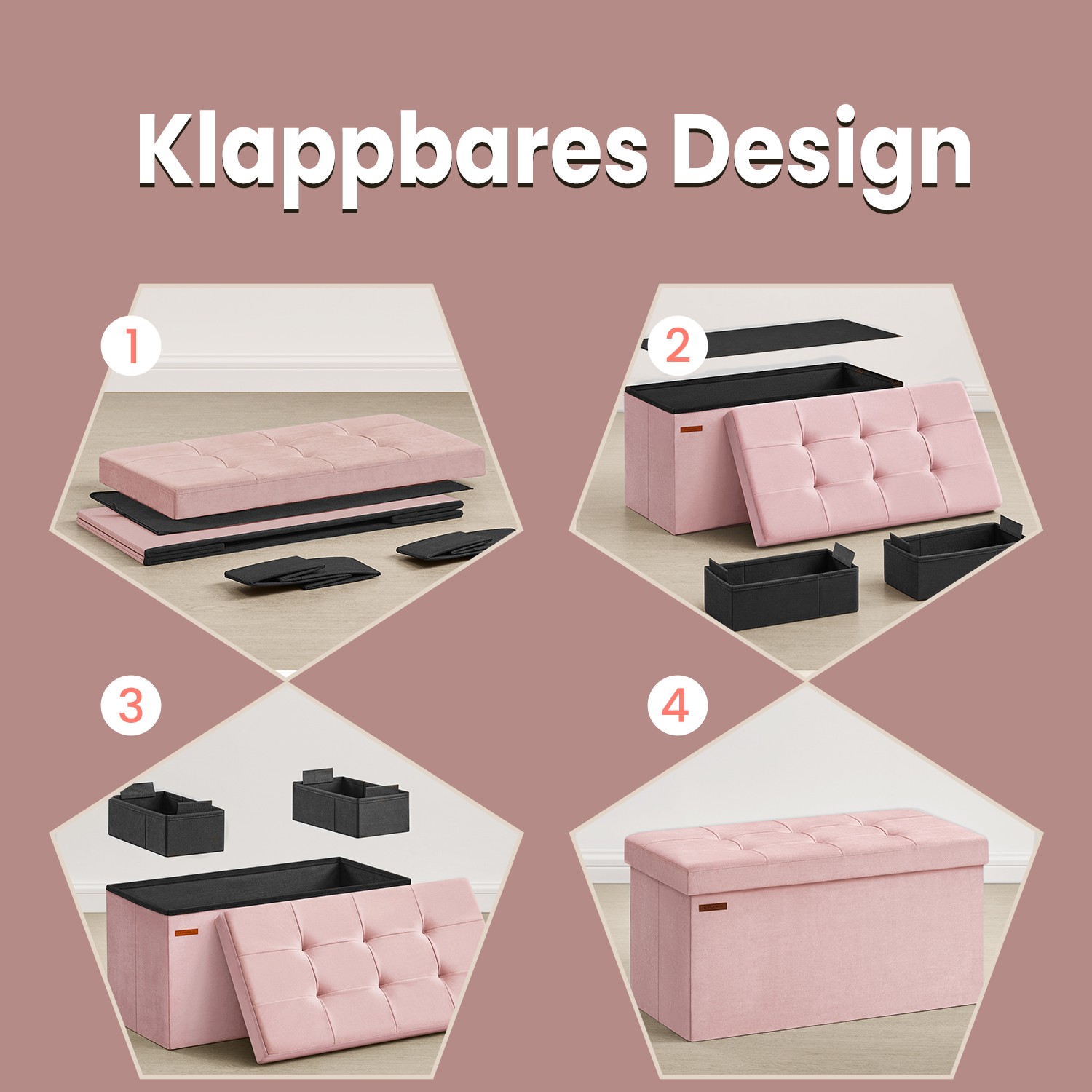 Storage stool, bench, 38 x 110 x 38 cm, foldable, footstool, load capacity up to 300 kg, for living room, bedroom, hallway, slate gray