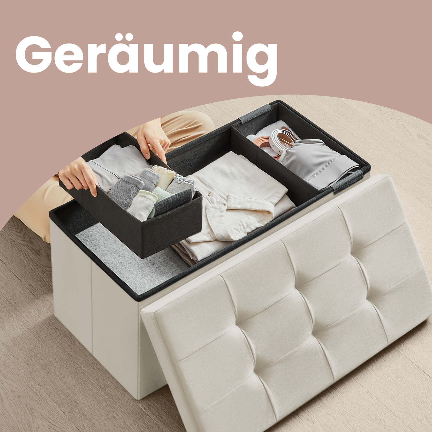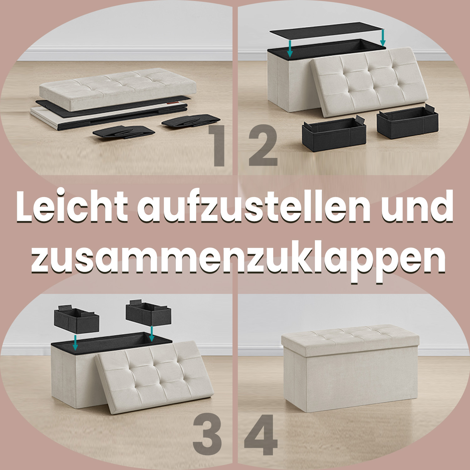 Storage stool, bench, 38 x 110 x 38 cm, foldable, footstool, load capacity up to 300 kg, for living room, bedroom, hallway, slate gray