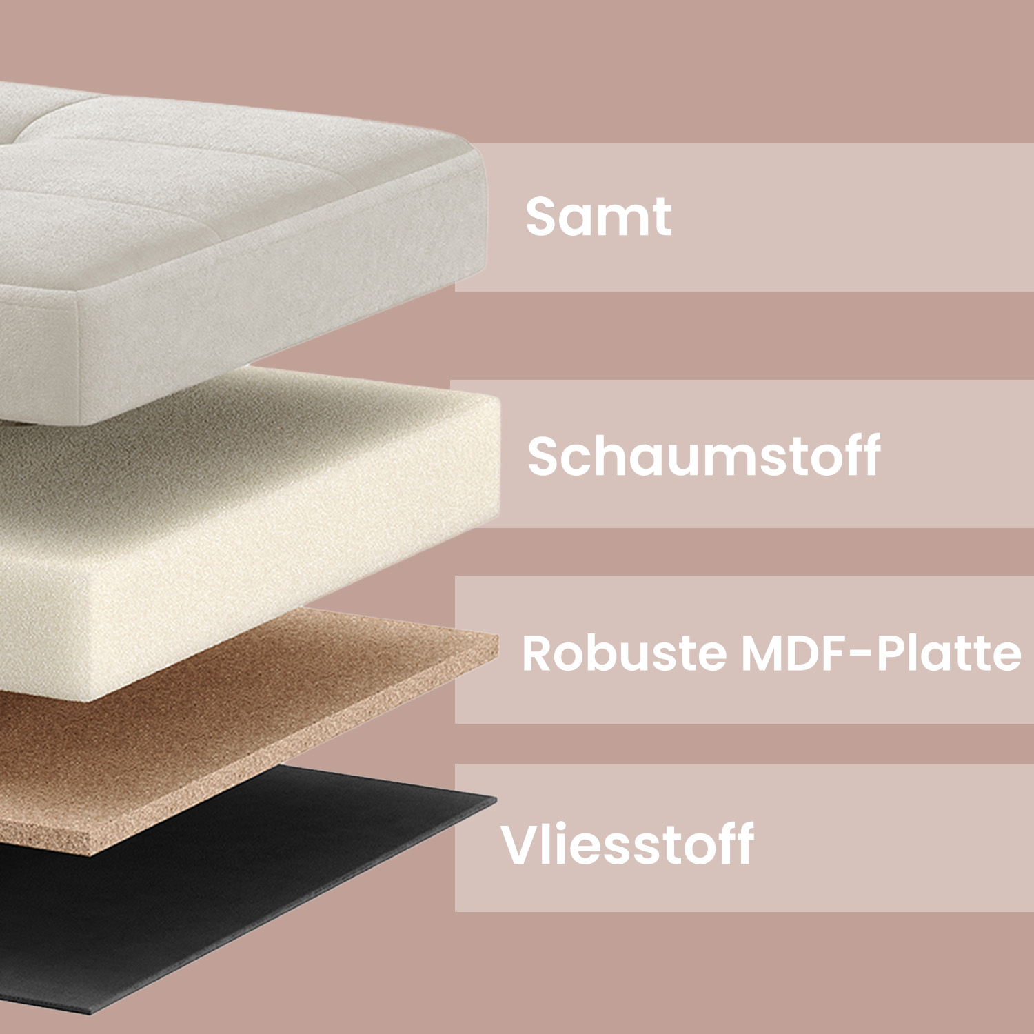 – Material: MDF (medium-density fiberboard), velvet, foam