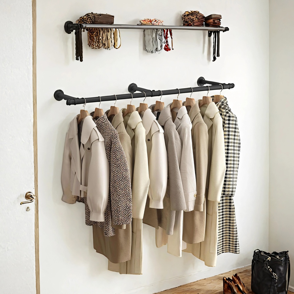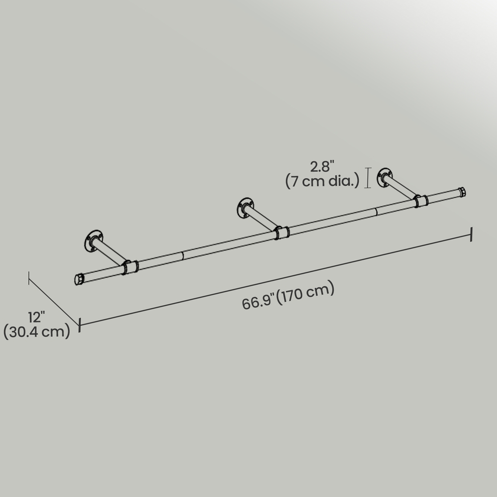 Does not take up any floor space Want to tidy up the piles of clothes in your wardrobe or the tangled mess of ties in your drawers? Try this SONGMICS wall-mounted clothes rack! With a length of 170 cm and a hanging design, it has plenty of space for lots of clothes and accessories. Easy to assemble You don’t need to be an expert to assemble this clothes rail. Thanks to the adjustable brackets with flange plates and the illustrated instructions, you can attach it to multiple walls in no time. Product details: – Color: Black – Material: Steel – Size: 30.4 x 170 x 7 cm (D x W x H) – Weight: 42.3 kg – Max. static load capacity: 68 kg Scope of delivery:- 1 x coat rack – 1 x accessory pack – 1 x instructions SONGMICS notes: – If you want to attach the coat rack to a plasterboard wall, ask your hardware store for suitable fittings.