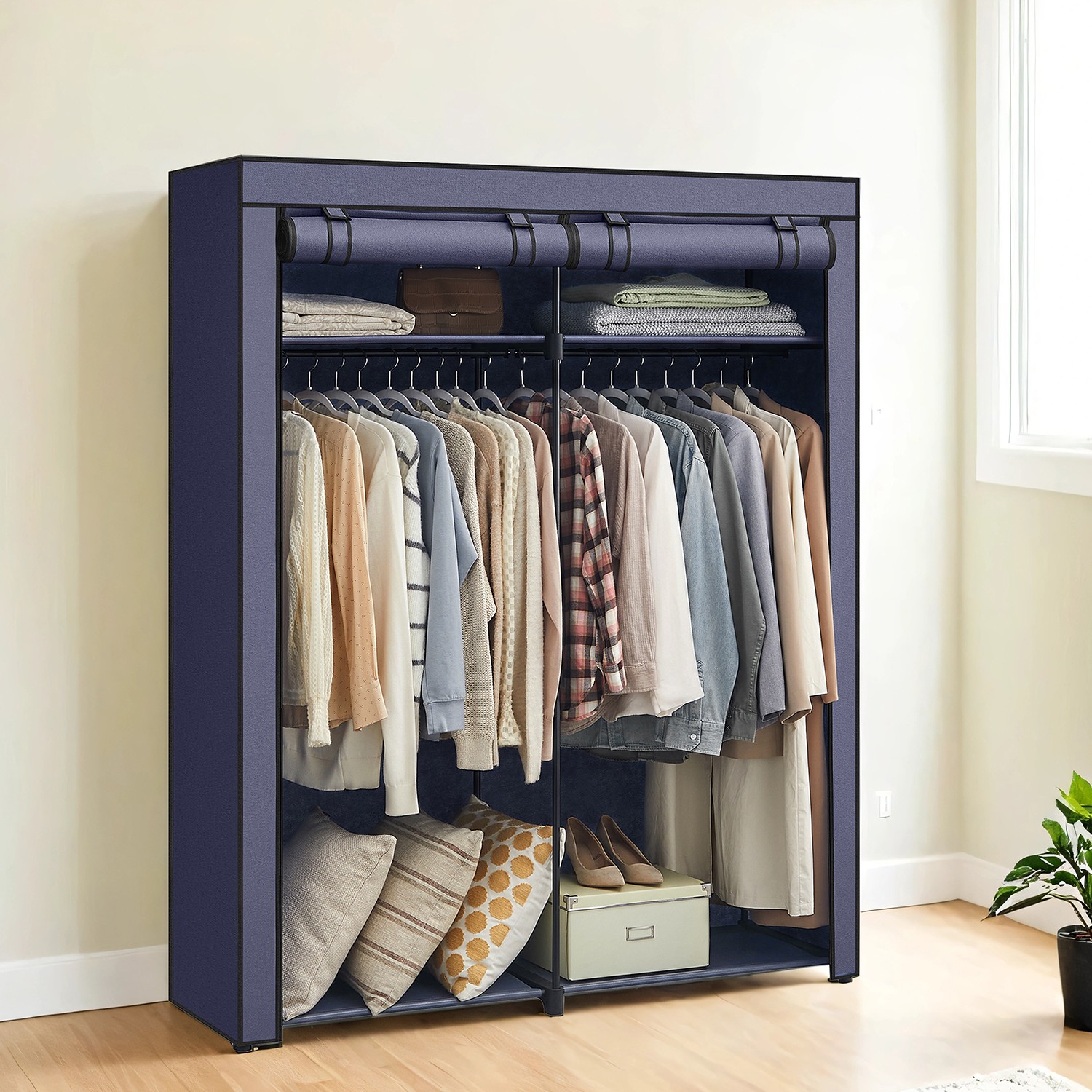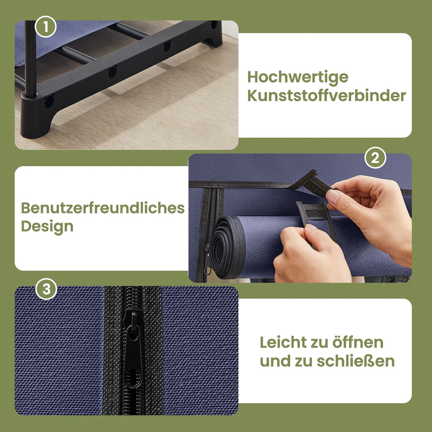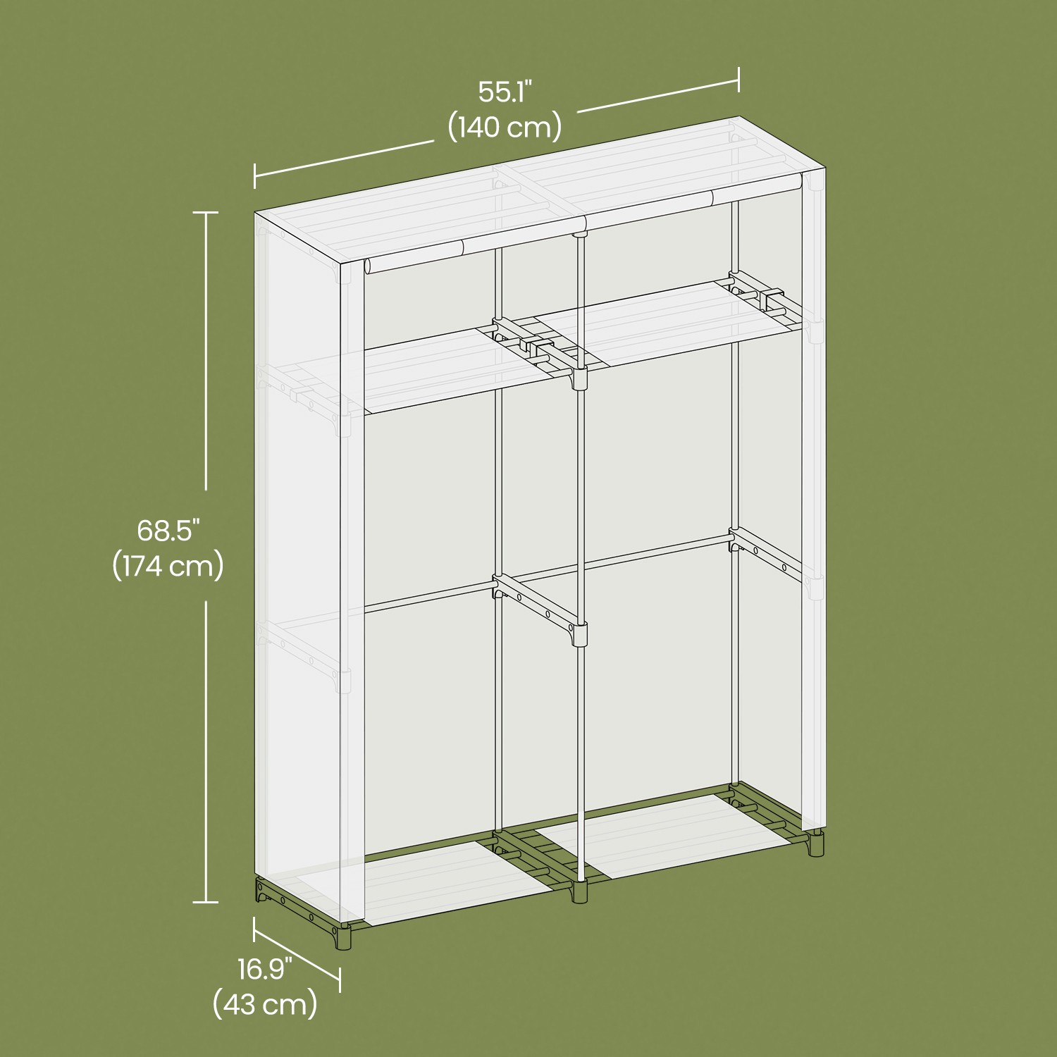 SONGMICS Wardrobe, coat rack with clothes rails, storage for clothes, fabric wardrobe, clothes rack, foldable, dressing room, bedroom, 140 x 43 x 174 cm, gray RYG02GY