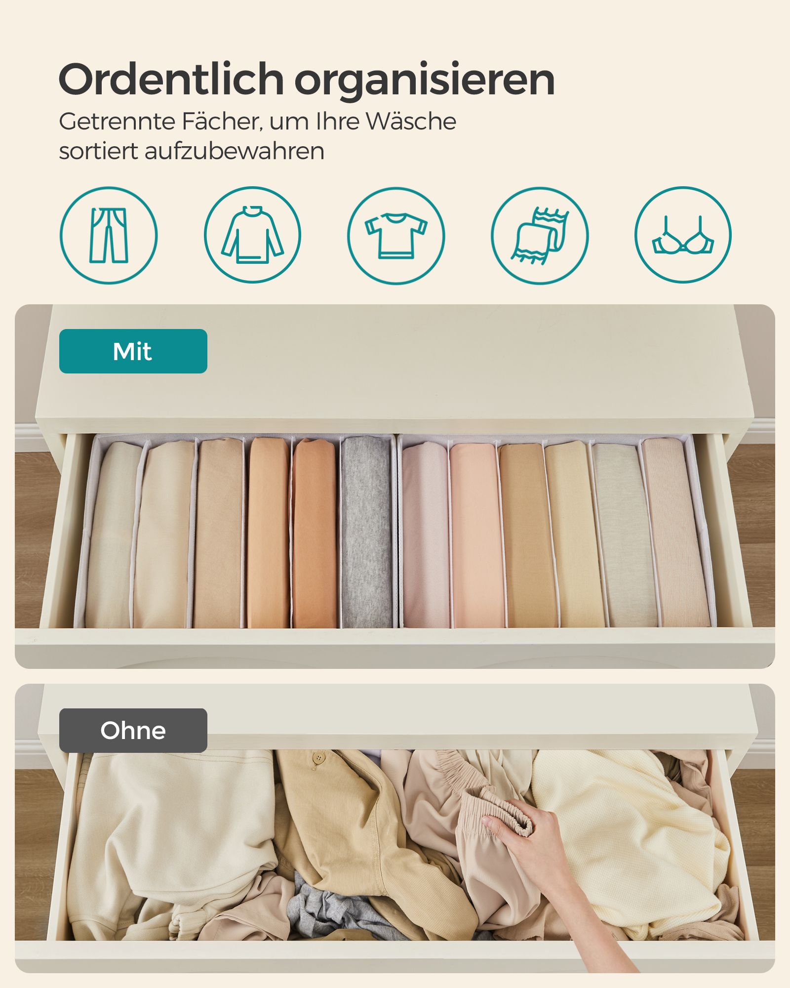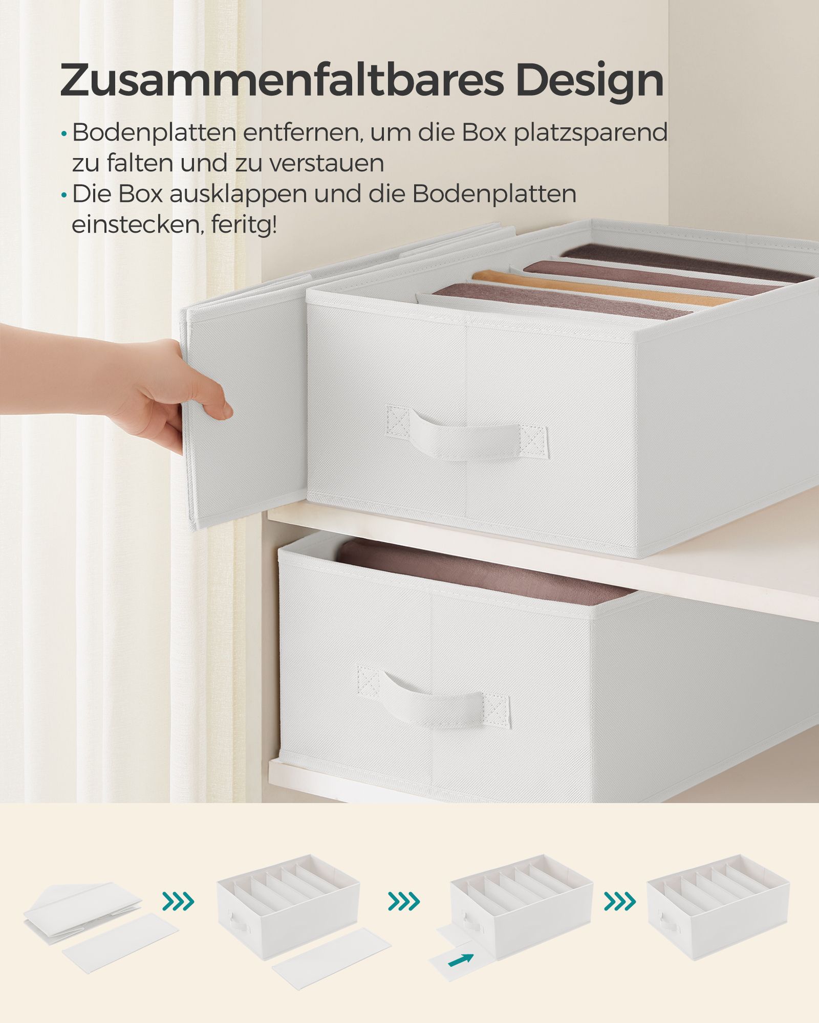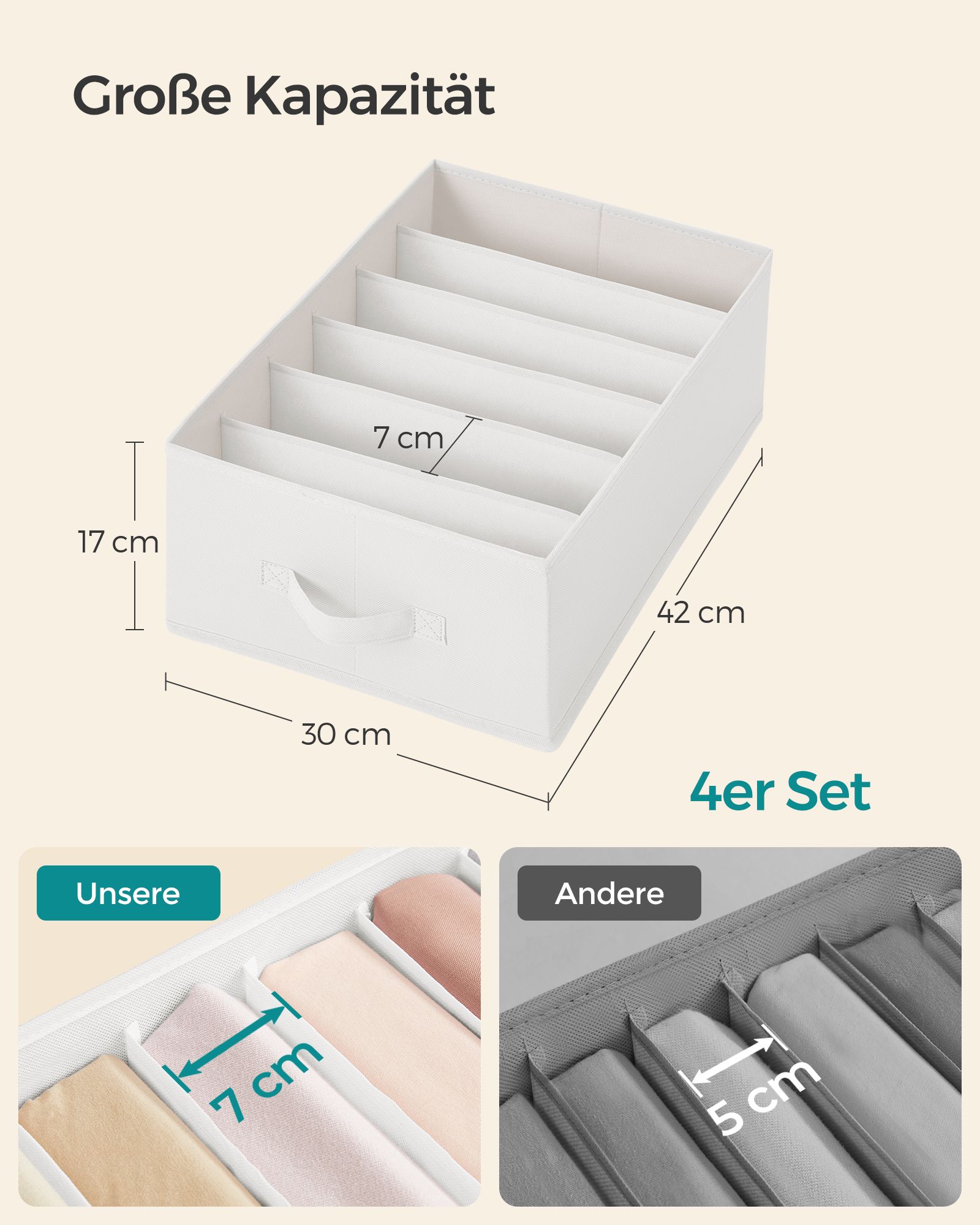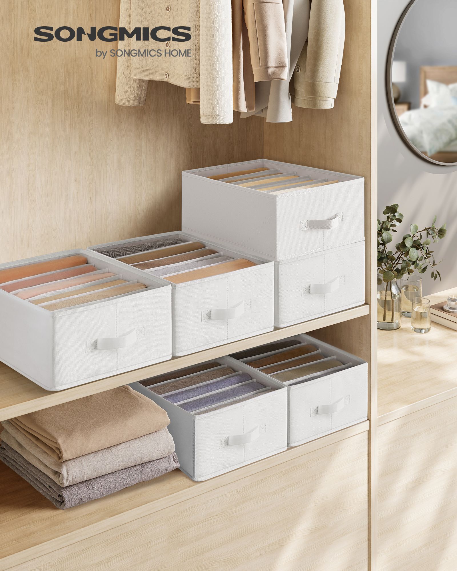 SONGMICS Wardrobe Organizer 4-Piece Set, Storage Box 6 Compartments, Drawer Organization System, Foldable Organization Boxes, 42 x 30 x 17 cm, for Pants, Clothing, Dove Gray RUS009G04