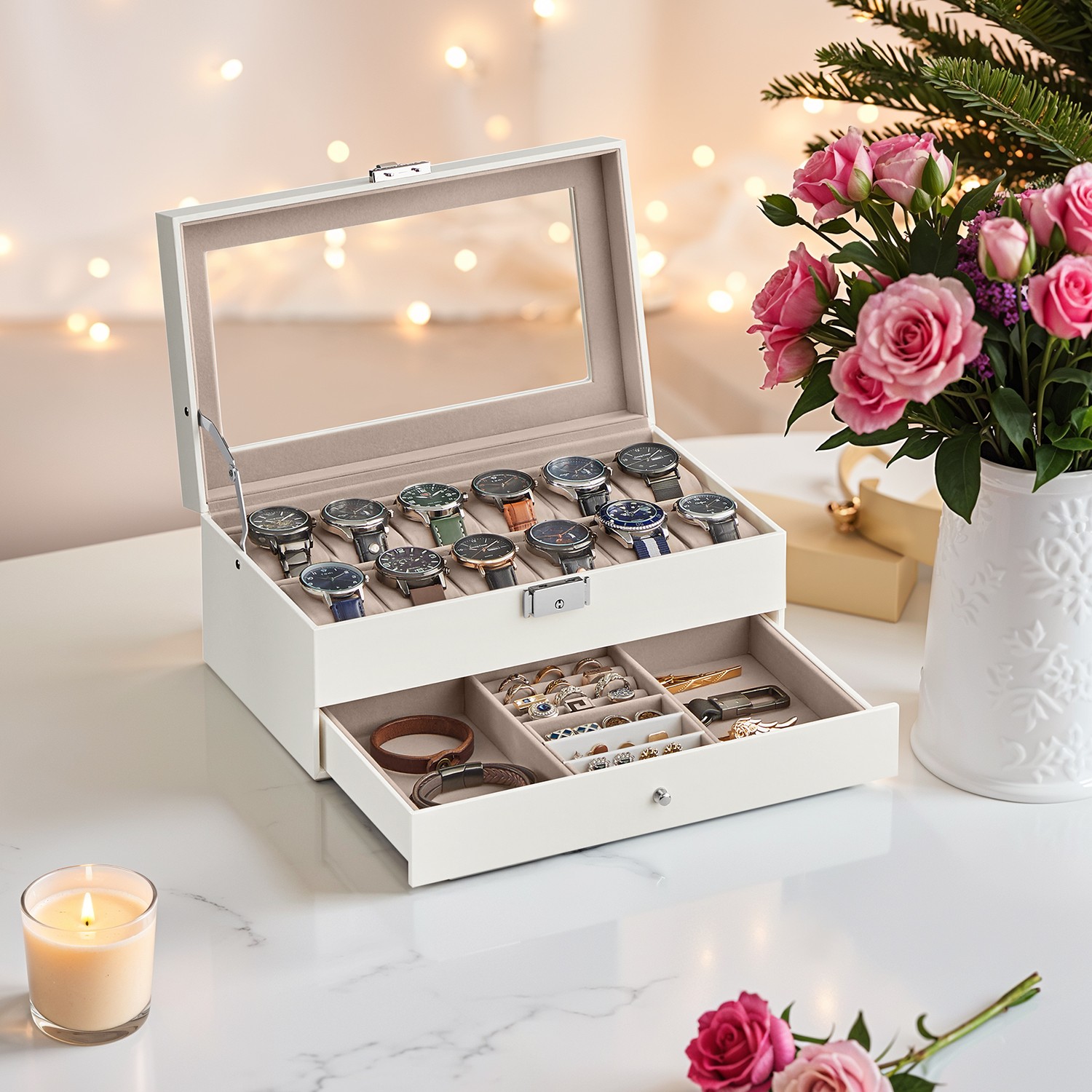 SONGMICS Watch Box, Watch Case with Glass Lid, 2 Levels