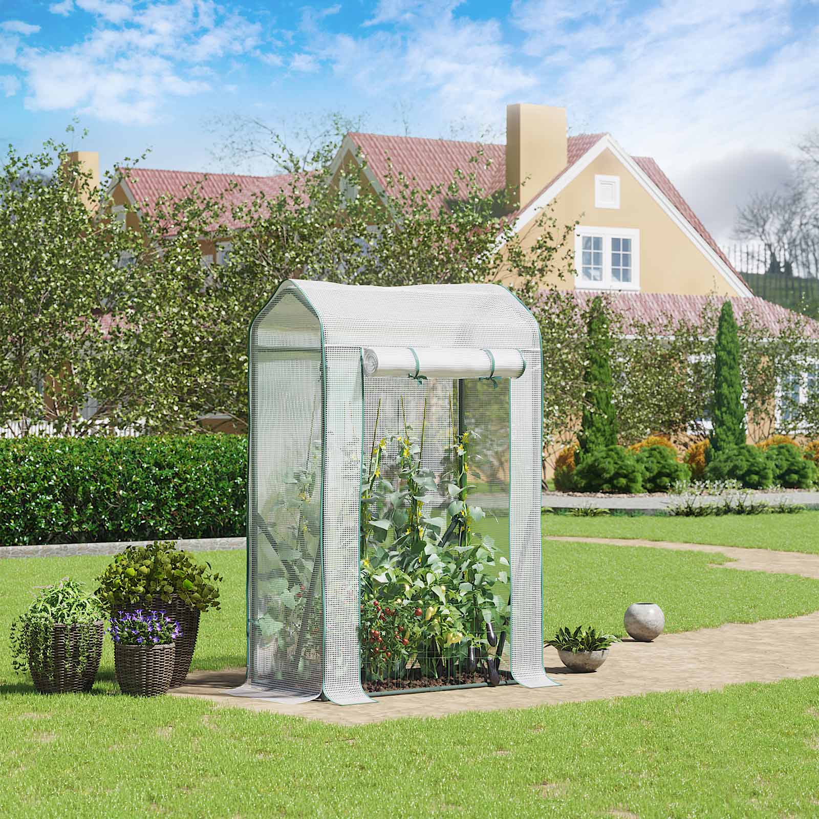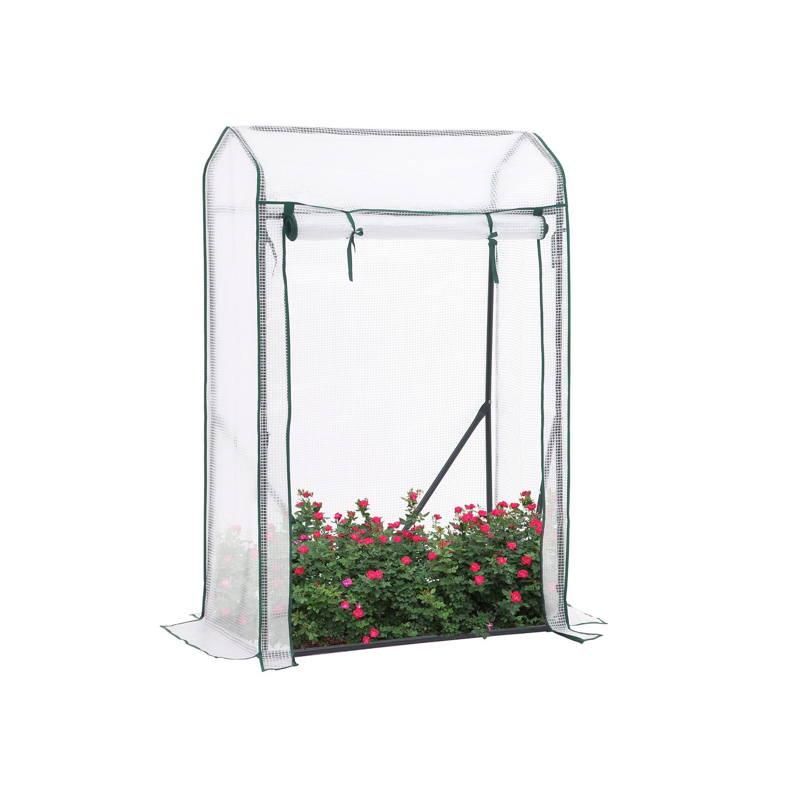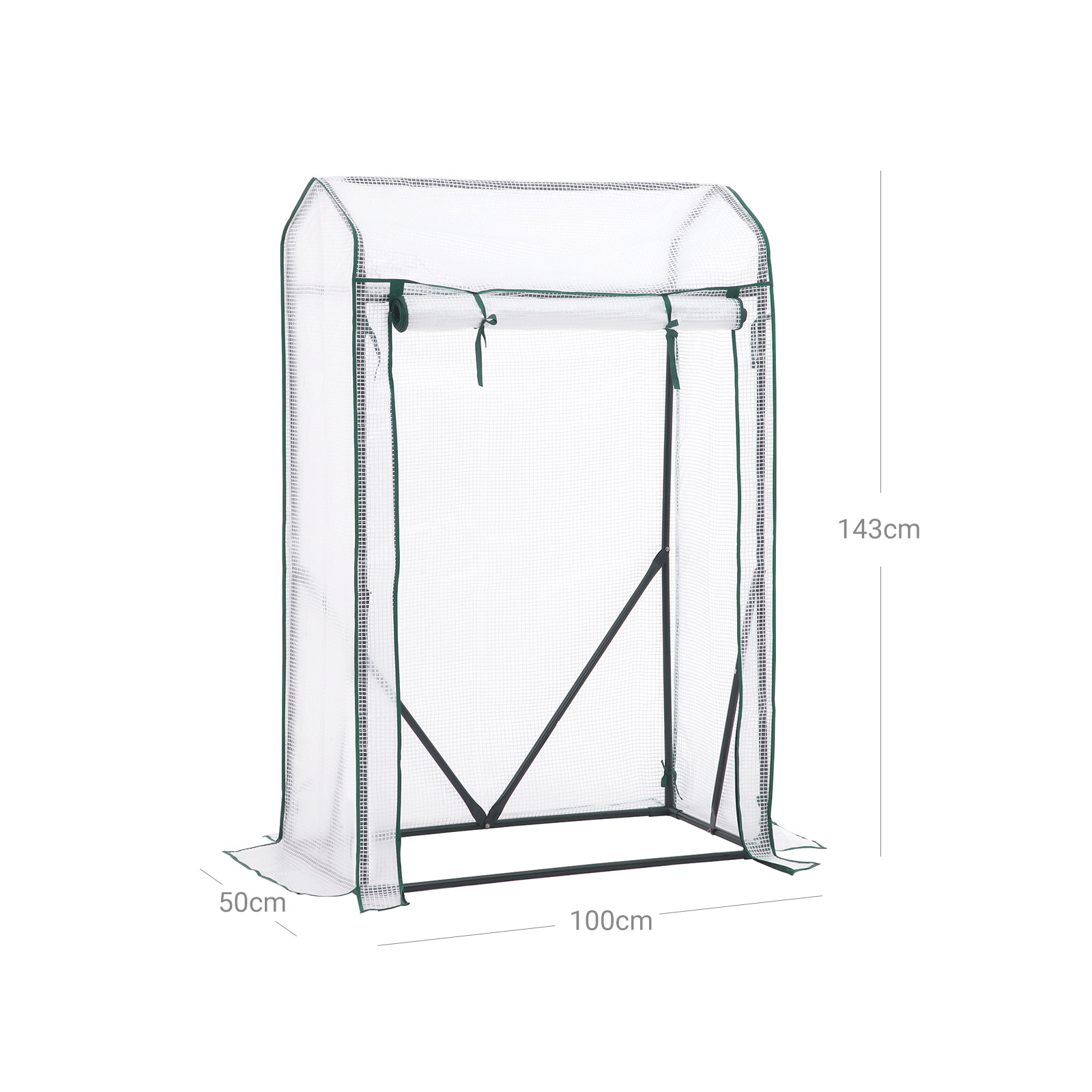 Create your own garden – here’s how: If the weather isn’t very kind to your plants, insects and birds are on the hunt for green treats, or you haven’t quite got the hang of gardening yet, get this garden shed from SONGMICS for your home! It protects delicate plants, flowers, and vegetables from wind, rain, ground frost, insects, and even cats and dogs. Sunshine, moisture, warmth: a sturdy greenhouse is an excellent gardener that takes great care of your plants. The transparent film not only allows sufficient sunlight to pass through, but also stores moisture and heat. However, if it ever gets too hot in this garden shed, you can simply open the zipper on the door and roll it up. This ensures ideal air circulation.Product details: Color: White Material: Powder-coated steel tubes, PVC Size: 100 x 50 x 150 cm (L x W x H) Weight: 5 kg Scope of delivery: 1 x greenhouse 4 x U-shaped ground hooks 1 x instructions (DE, EN, FR, ES, IT) SONGMICS notes:Please do not use a high-pressure cleaner to clean the greenhouse. Please use a damp cloth or brush for this purpose.