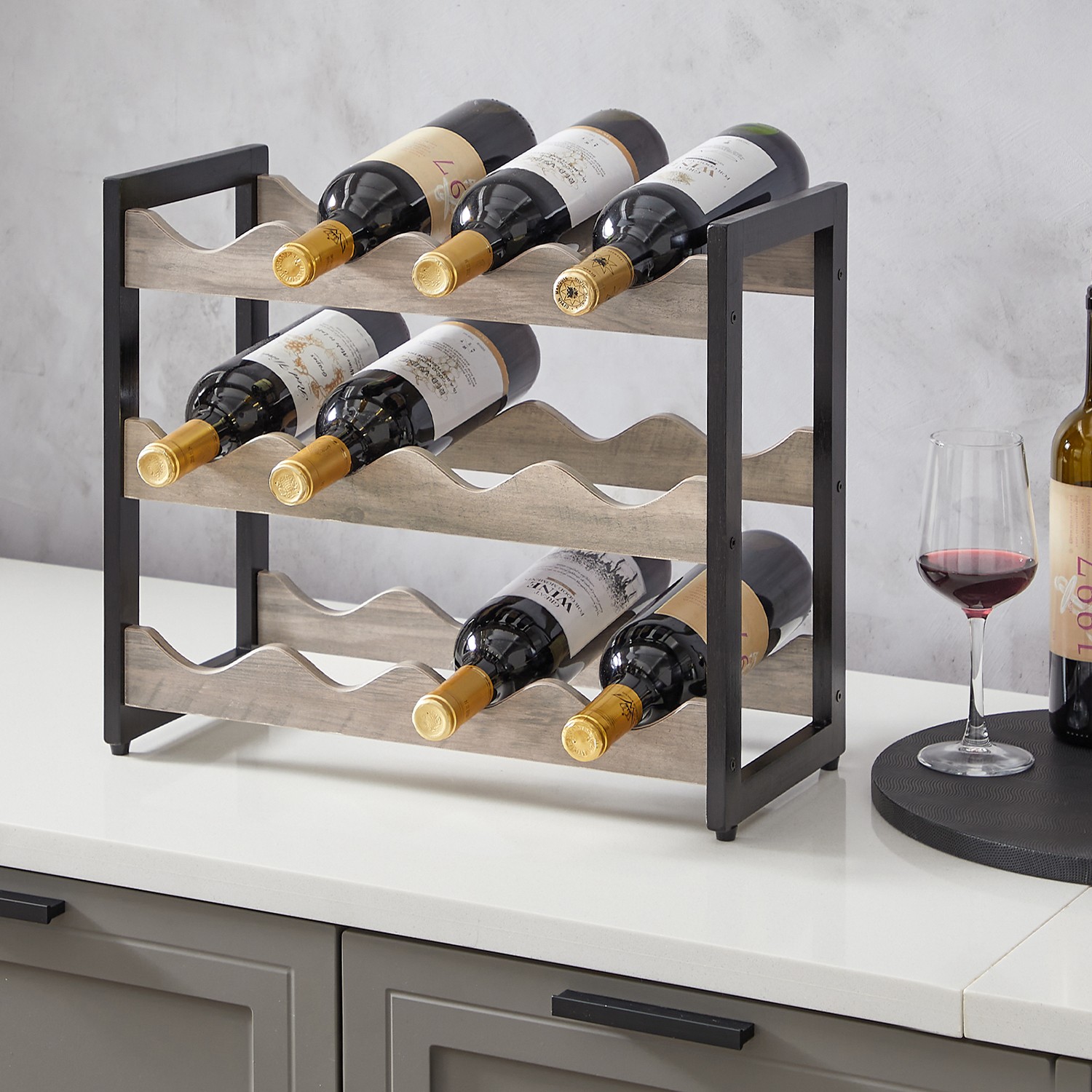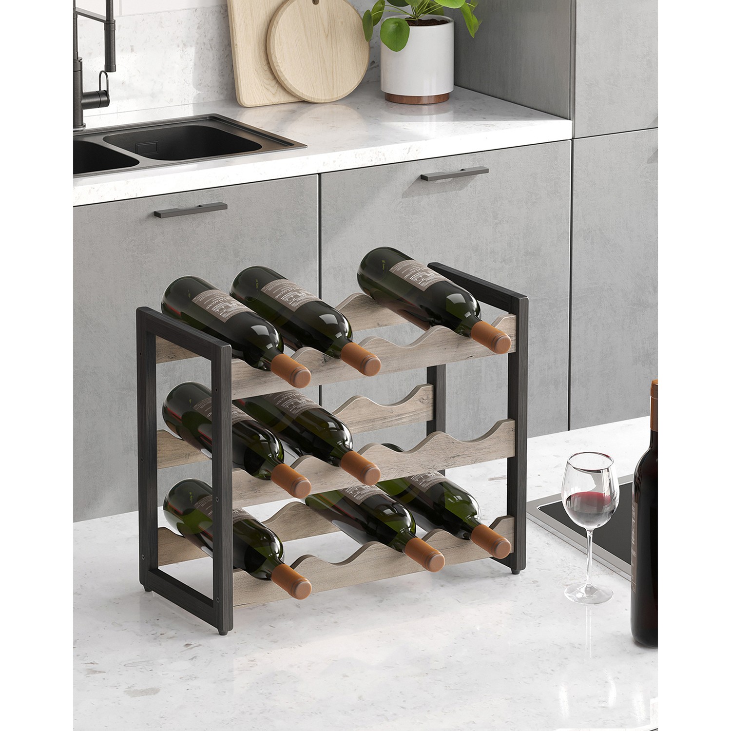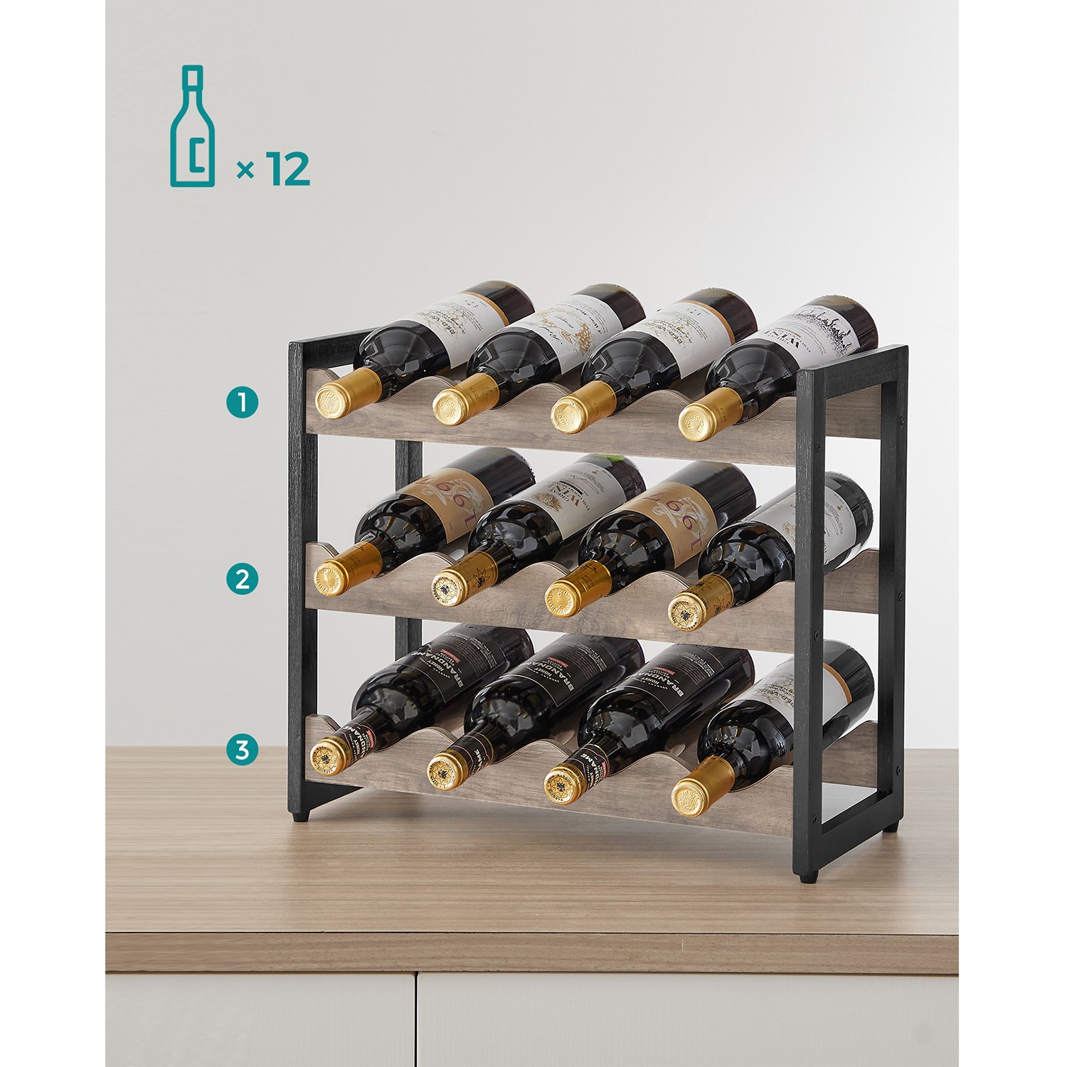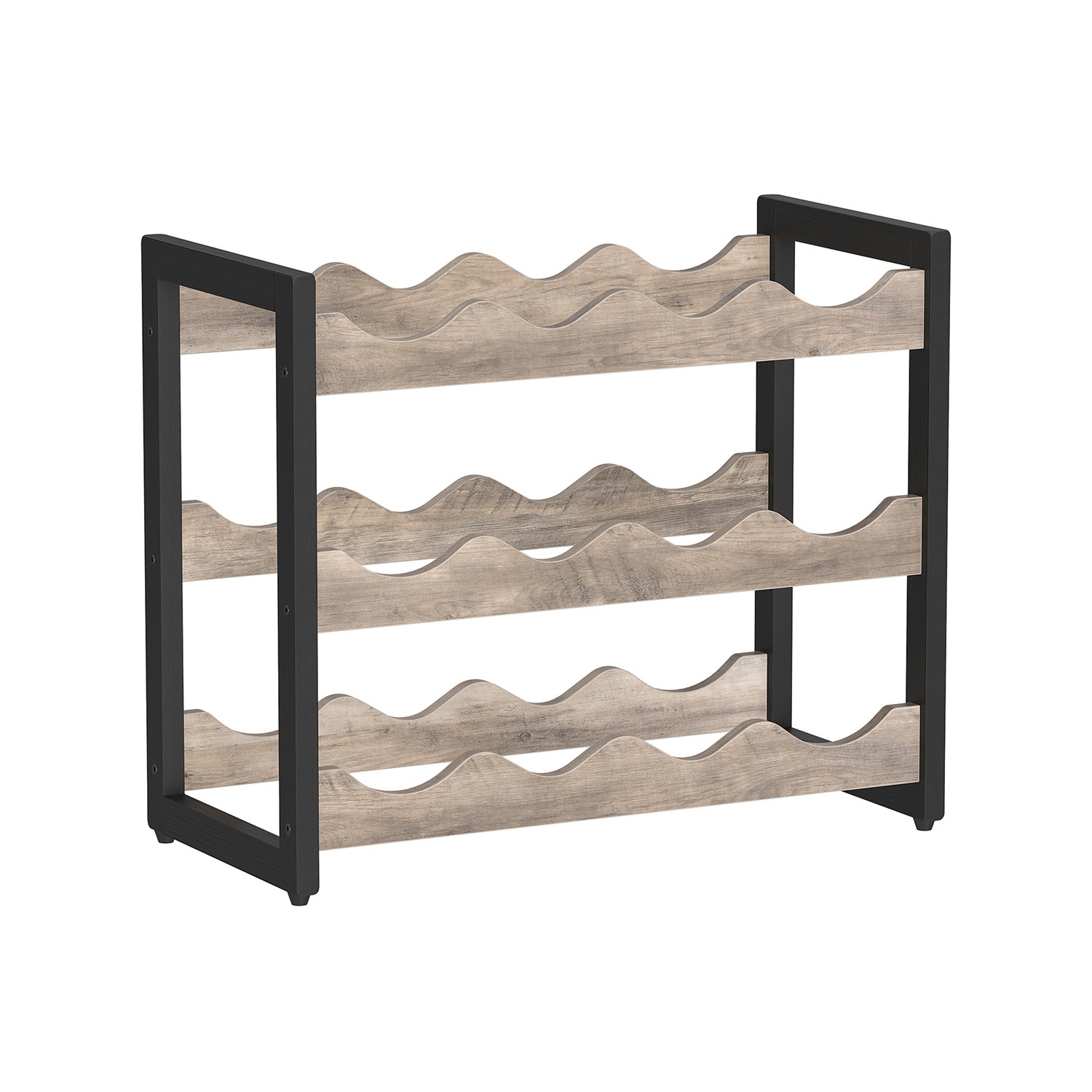 Planning a party? With this bottle rack, your home bar will always be ready. This wine rack offers 12 open compartments where you can display your wine collection. Apart from being a good storage option, this wine holder is also a great decorative piece that will enhance your wine collection. Thoughtful details: – Retro design in country house style. – Made of MDF and bamboo. – Easy to use and assemble. – 3 shelves that can hold 12 bottles. – Compact design for efficient and space-saving storage. – Unique wave-shaped design to prevent wobbling. Product details: – Color: Greige-black – Material: Bamboo, MDF (medium-density fiberboard) – Size: 20.3 x 44.8 x 38 cm (D x W x H) – Weight: 1.5 kg – Max. static load capacity per shelf: 15 kg Scope of delivery:- 1 x wine rack – 1 x accessory pack – 1 x instructions SONGMICS notes: – Avoid exposing the item to moisture for long periods of time. – Never touch with sharp objects that could damage the surface of the item. – Children must not climb on or play with the product.