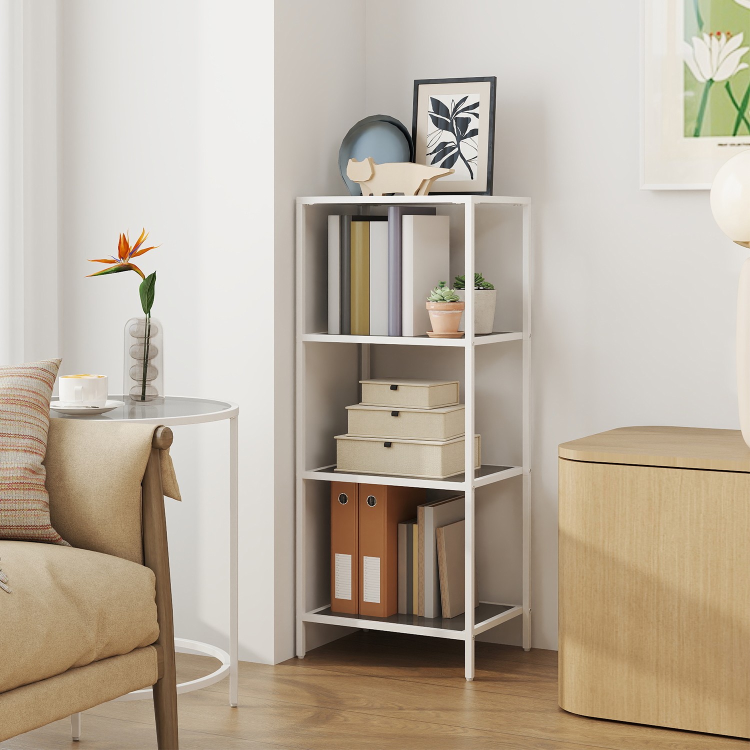VASAGLE bathroom shelf, kitchen shelf, standing shelf, hallway shelf, plant shelf with 4 tempered glass shelves, easy assembly, living room, bedroom, office, black LGT028B61