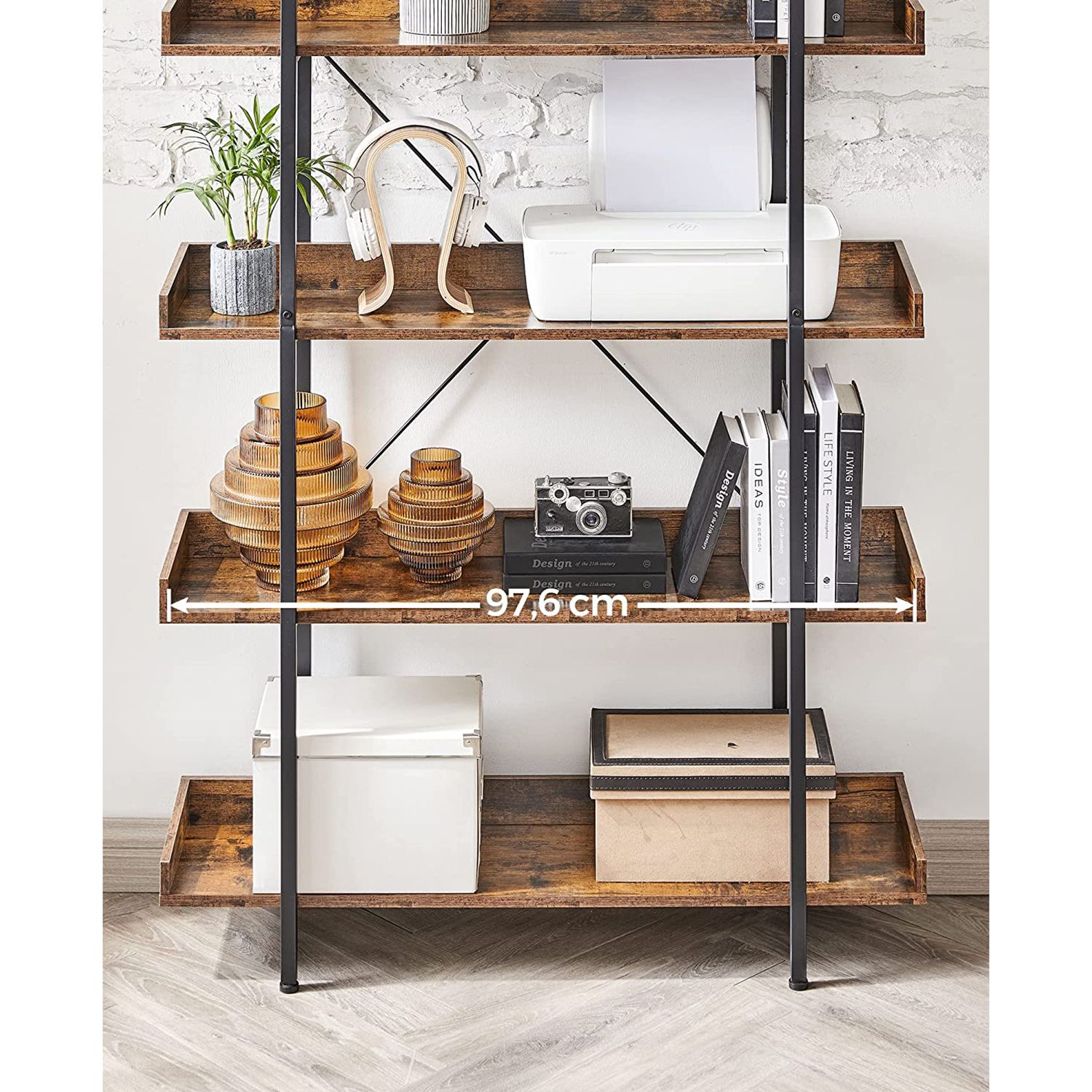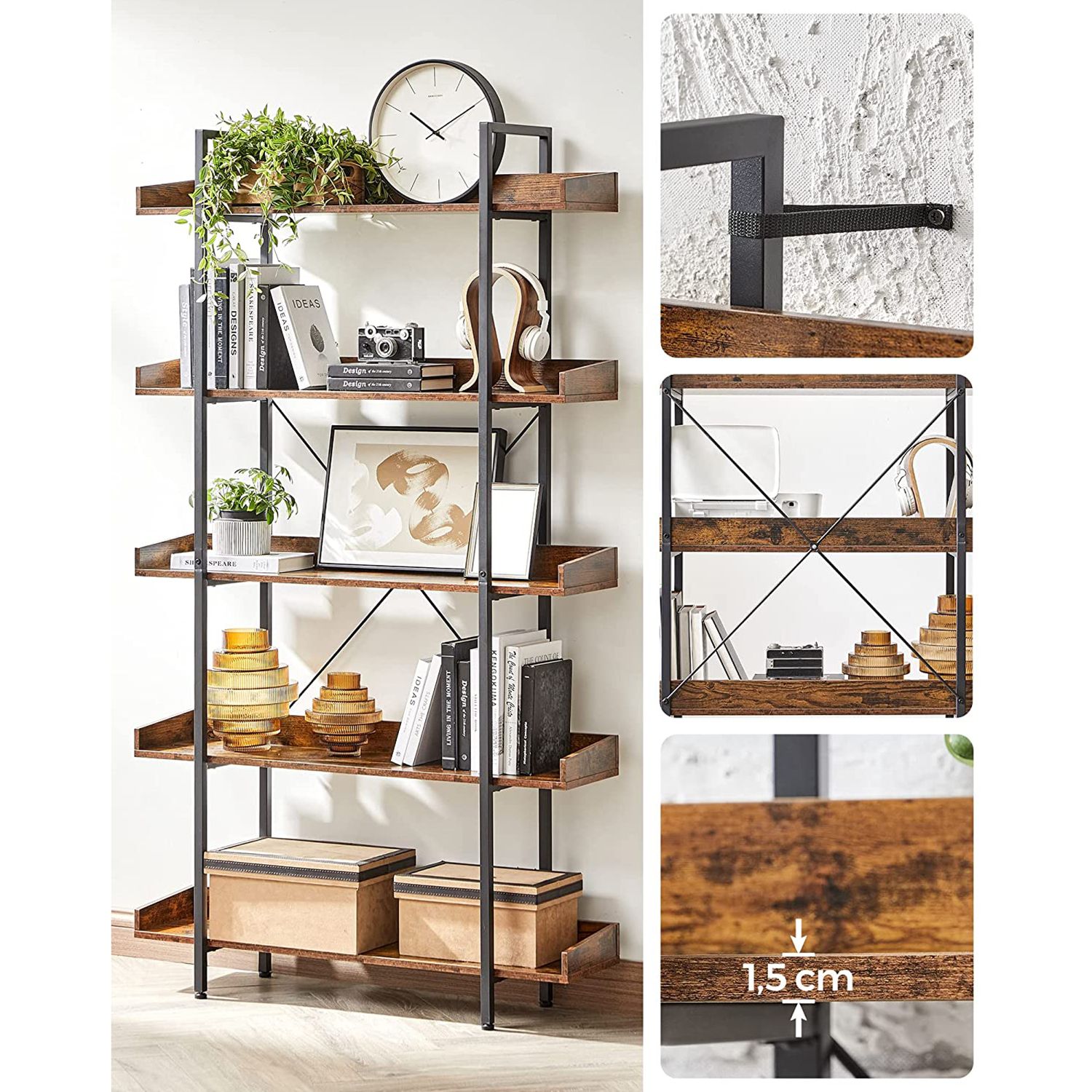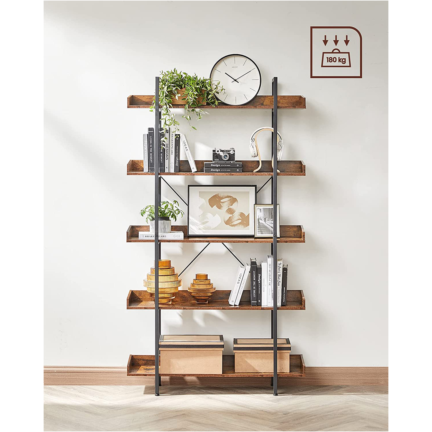 Product details: – Color: Vintage brown-black – Material: Chipboard, steel – Size: 100 x 28 x 178 cm (L x W x H) – Distance between shelves: 36 cm – Weight: 19.7 kg – Max. static load capacity per shelf: 36 kg – Max. static load capacity total: 180 kg Scope of delivery: – 1 x bookcase – 1 x accessory package – 1 x anti-tip device – 1 x instructions VASAGLE Notes:- For safety reasons, children are not allowed to climb on or play with the product. – Please secure this product to the wall using the included anti-tip device.