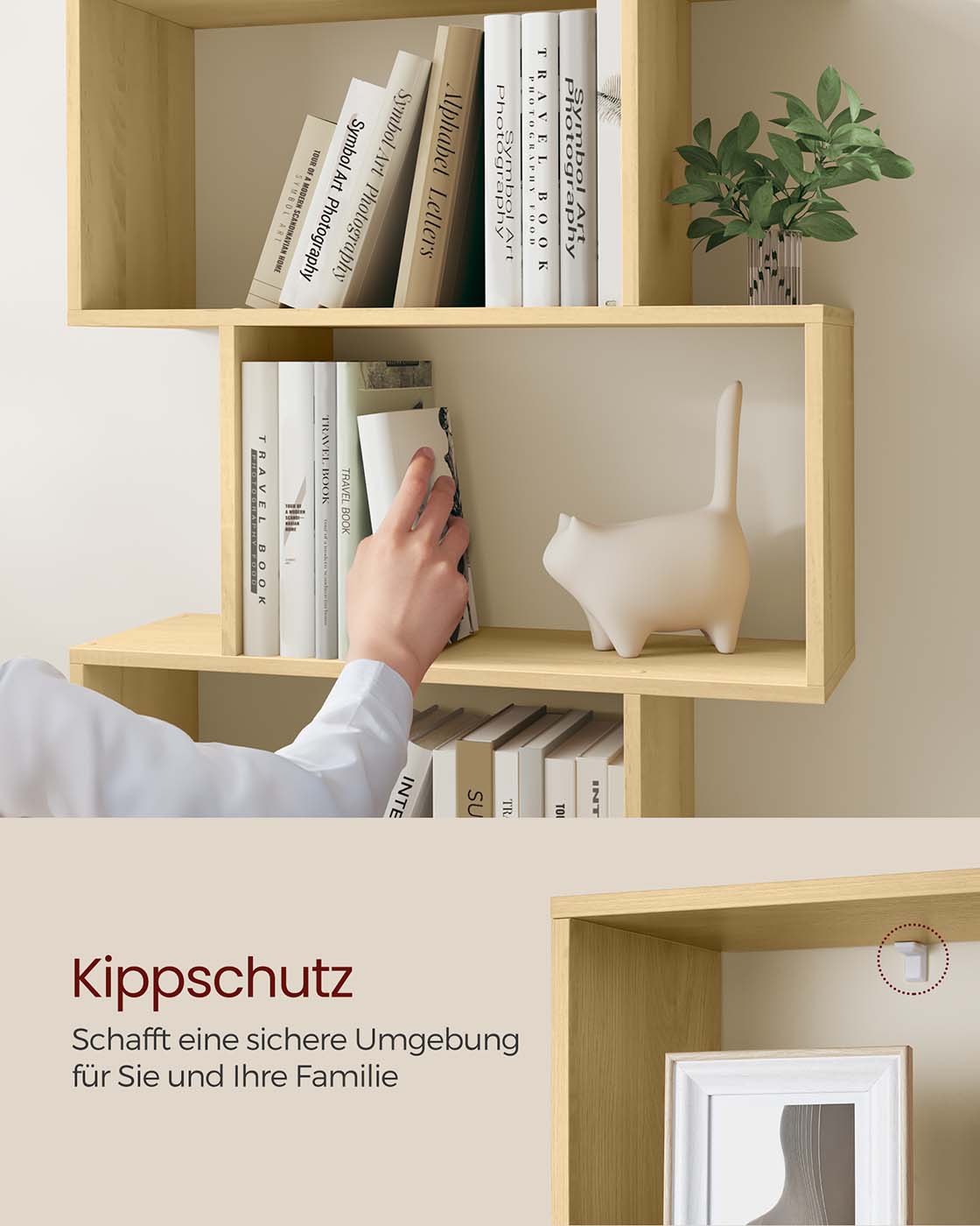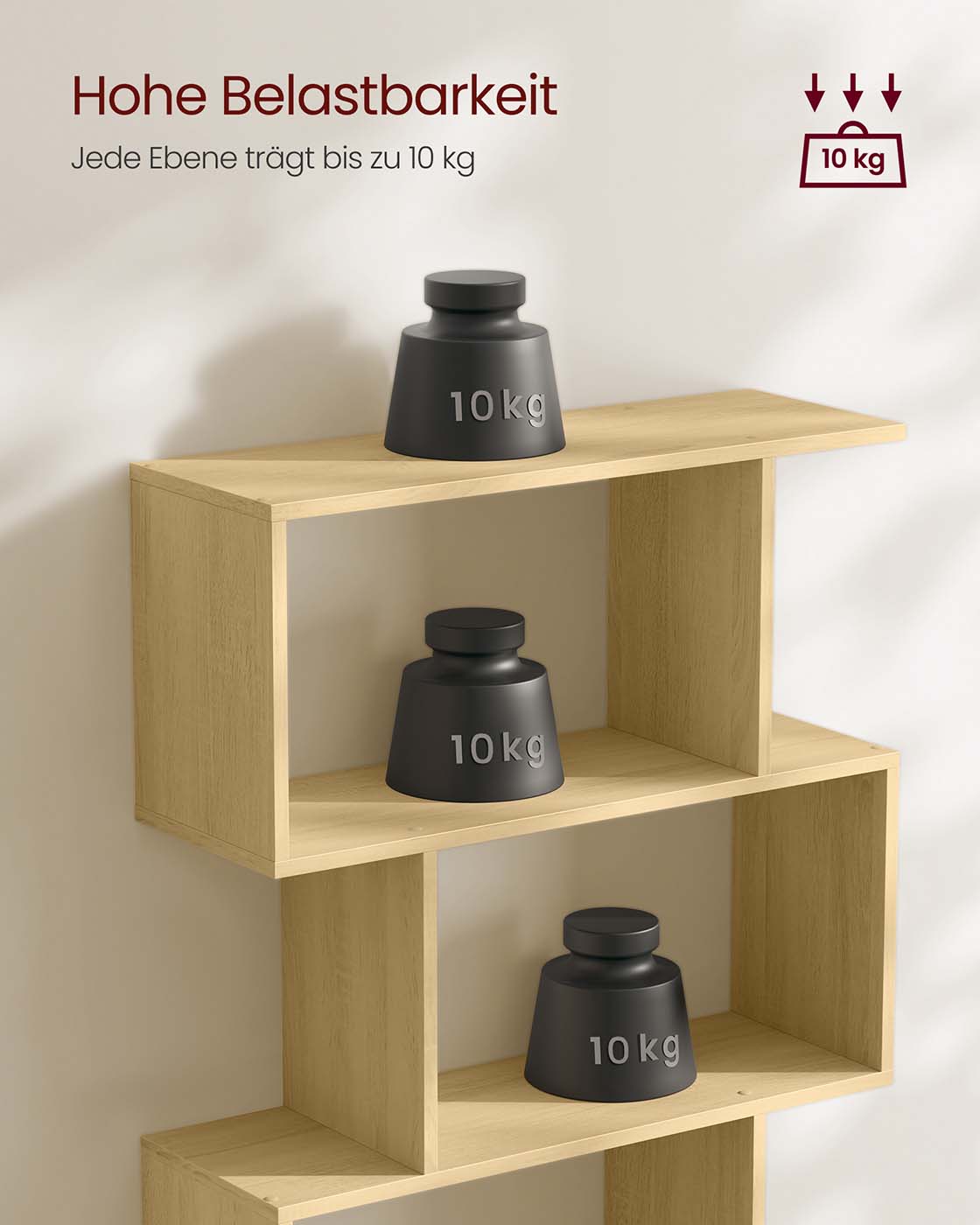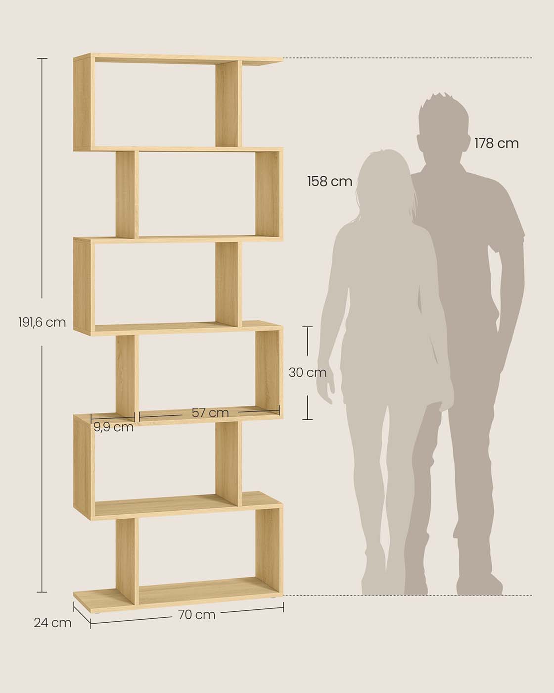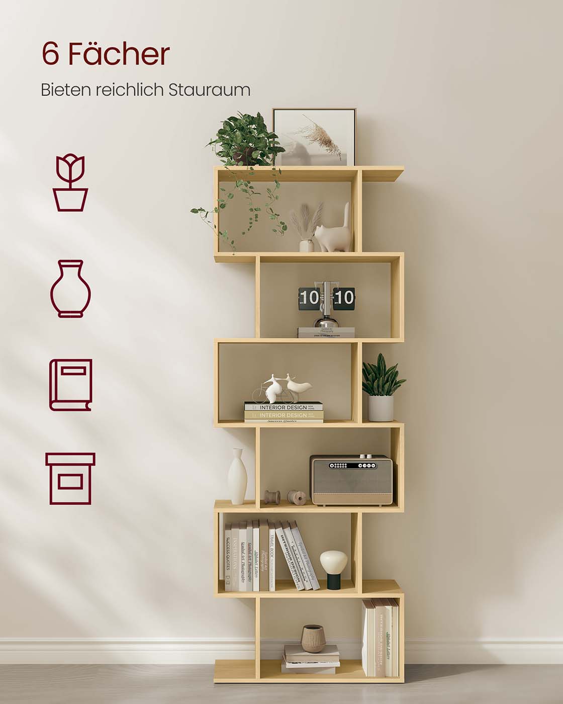 VASAGLE Bookshelf, shelf, display shelf, freestanding cabinet, decorative shelf with 6 levels, greige LBC061M01
