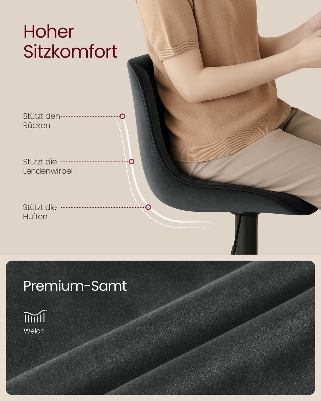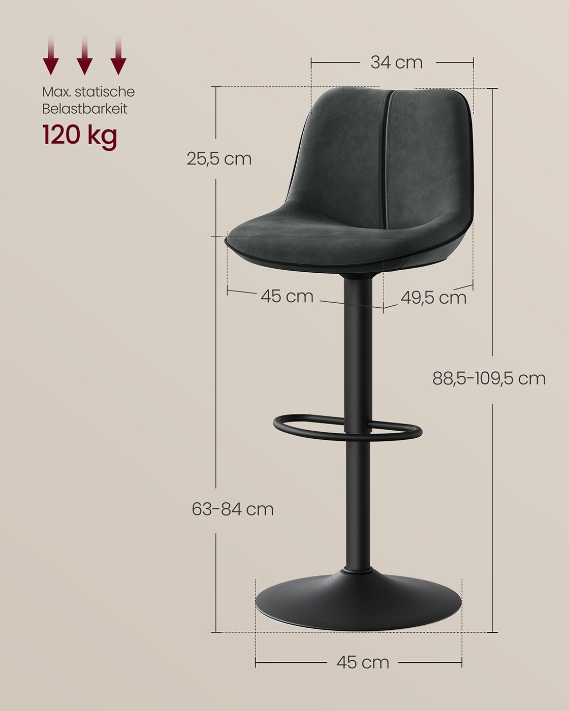 Overall dimensions: 49.5 x 45 x (88.5–109.5) cm (D x W x H)