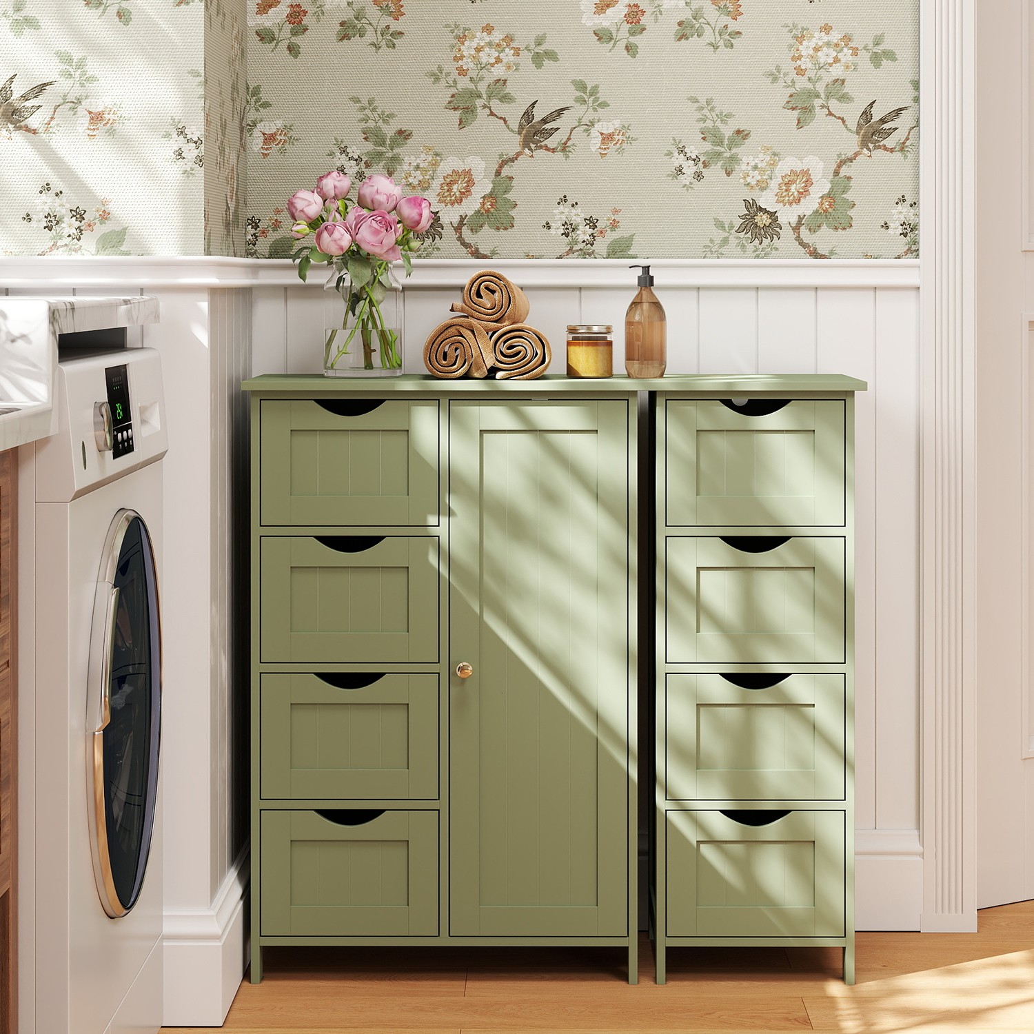 Bathroom cabinet, narrow bathroom cabinet, side cabinet, chest of drawers, with 4 drawers, adjustable shelf, 30 x 55 x 82 cm, laurel green