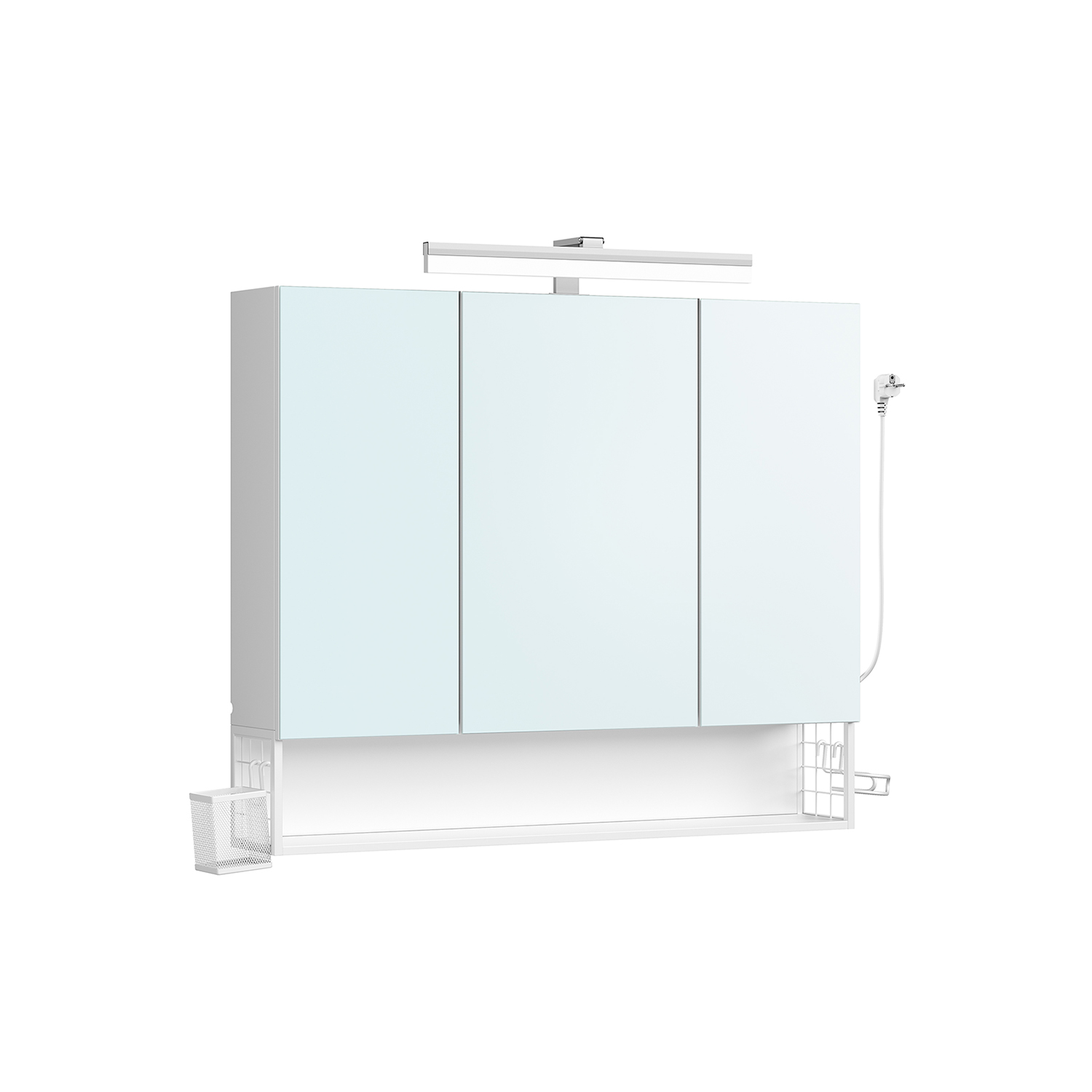 VASAGLE bathroom cabinet with 3 doors, mirror cabinet, wall cabinet, power outlets, hanging basket, hair dryer holder, plenty of storage space, for bathrooms, 16.5 x 90 x 75 cm, cloud white BBK136W01