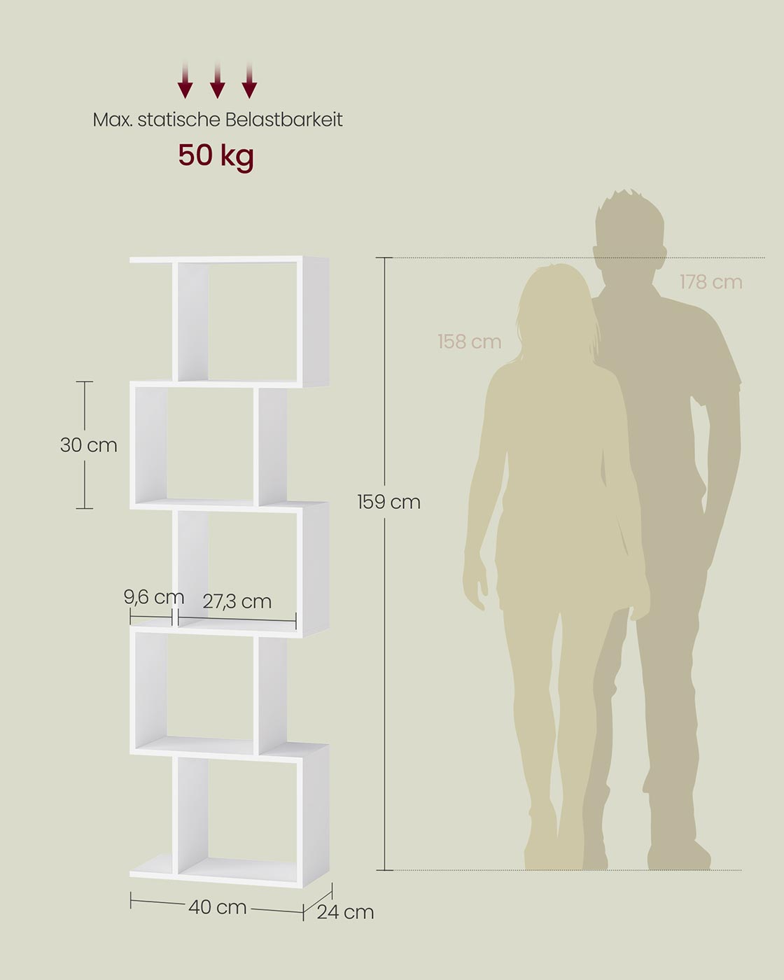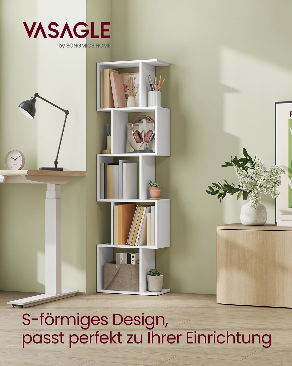 VASAGLE Bookshelf, shelf, display shelf, freestanding cabinet, decorative shelf with 6 levels, greige LBC061M01