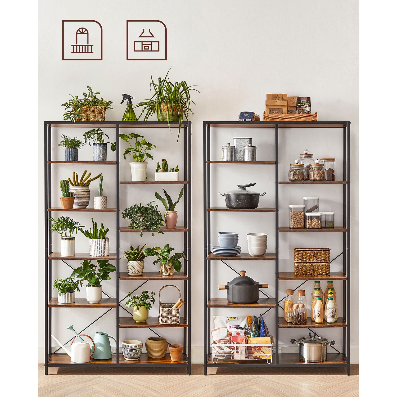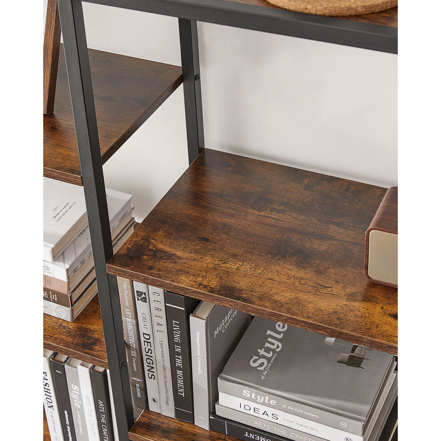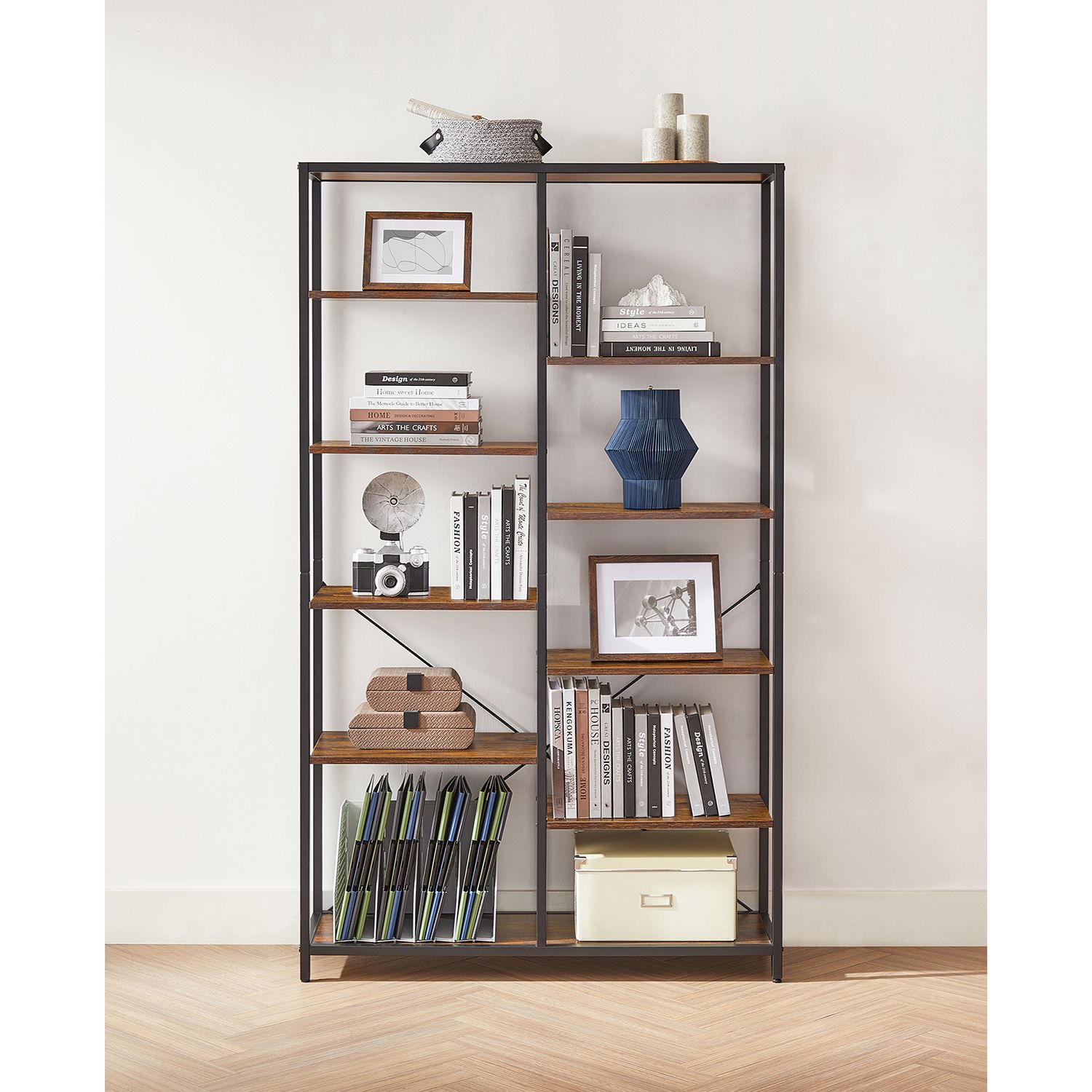 Product details: – Color: Vintage brown-black – Material: Chipboard, steel – Size: 100 x 30 x 170 cm (L x W x H) – Weight: 24.2 kg – Max. total static load capacity: 50 kg Scope of delivery:- 1 x bookshelf – 1 x accessory pack – 1 x instructions VASAGLE Notes: – For safety reasons, children are not allowed to climb on or play with the product. – Please secure this product to the wall with the included anti-tip device to ensure safe use.