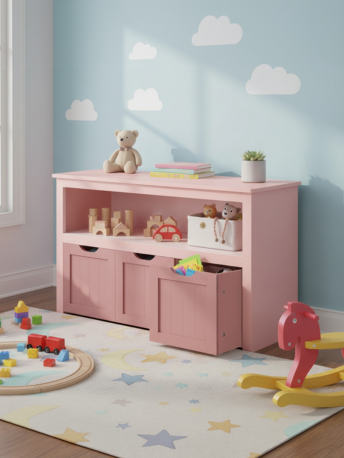 VASAGLE Children’s Shelf, Toy Storage for Kids, Storage Cabinet, Toy Cabinet, Storage Box with Casters, Toy Shelf, for Children’s Room, 102 x 30 x 60 cm, White LHS380W01