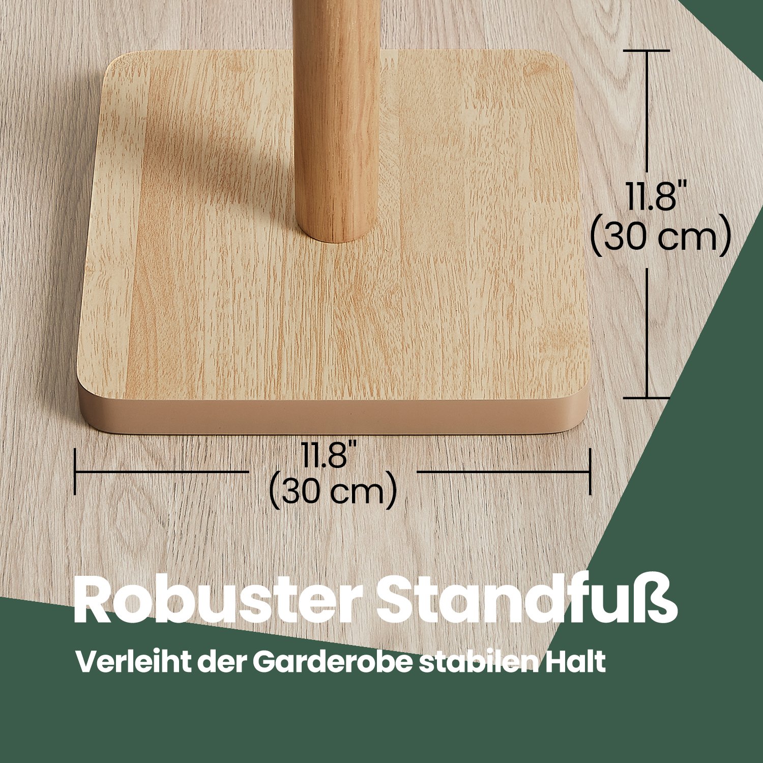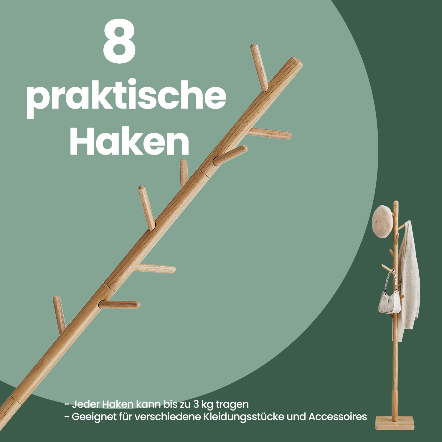 – Material: rubberwood (coat rack and hooks), MDF (medium-density fiberboard) (base)