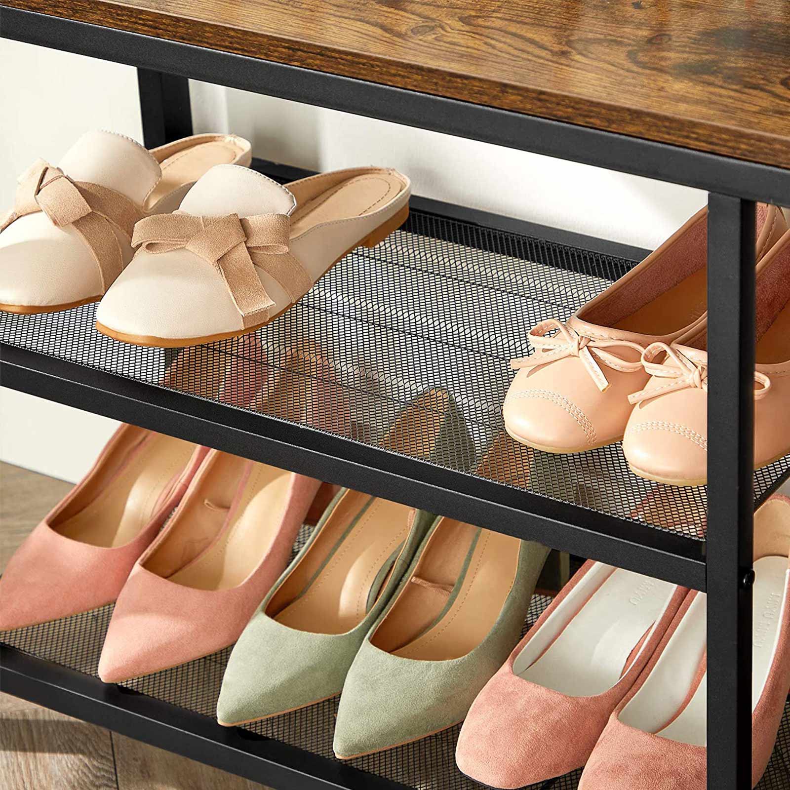 Product details: – Color: Vintage brown-black – Material: Chipboard, steel – Size: 84 x 30 x 182 cm (L x W x H) – Weight: 12 kg – Max. static load capacity per hook: 2 kg – Max. static load capacity of the seat: 90 kg – Max. static load capacity of the mesh shelf: 10 kg Scope of delivery:- 1 x coat rack – 1 x accessory pack – 1 x anti-tip device – 1 x instructions (DE, EN, FR, ES, IT) VASAGLE notes: – For safety reasons, children are not allowed to climb on or play with the product. – The maximum static load capacity of the bench is 90 kg. Please do not exceed this maximum weight. – Please attach this product to the wall using the included anti-tip device to ensure safe use.