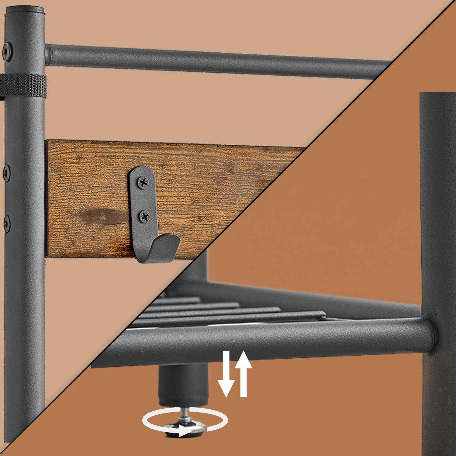 Product details: – Color: Vintage brown-black – Material: Chipboard, steel – Size: 32 x 85 x 175 cm (D x W x H) – Seat size: 32 x 85 cm (D x W) – Weight: 9.5 kg – Max. static load capacity per hook: 3 kg – Max. static load capacity of the seat: 80 kg Scope of delivery: – 1 x coat rack – 1 x accessory package – 1 x anti-tip device – 1 x instructions VASAGLE Notes:- Please attach this product to the wall using the included anti-tip device to ensure safe use. – The bar at the top is not intended for hanging items. Please hang clothes or other items on the hooks. – The maximum static load capacity of the seat is 80 kg. Please do not exceed this maximum weight.