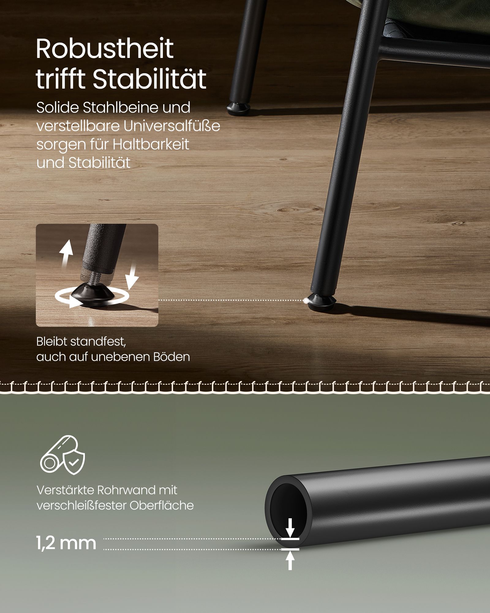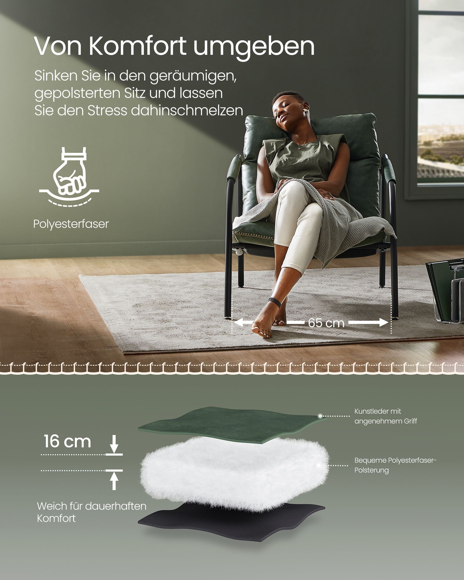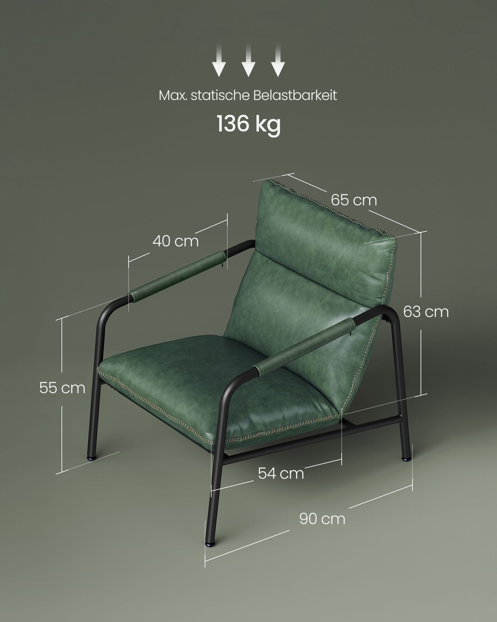 VASAGLE EKHO Collection – Lounge chair, armchair with metal frame, faux leather, with stitching, mid-century modern style, for living room, bedroom, study, lounge
