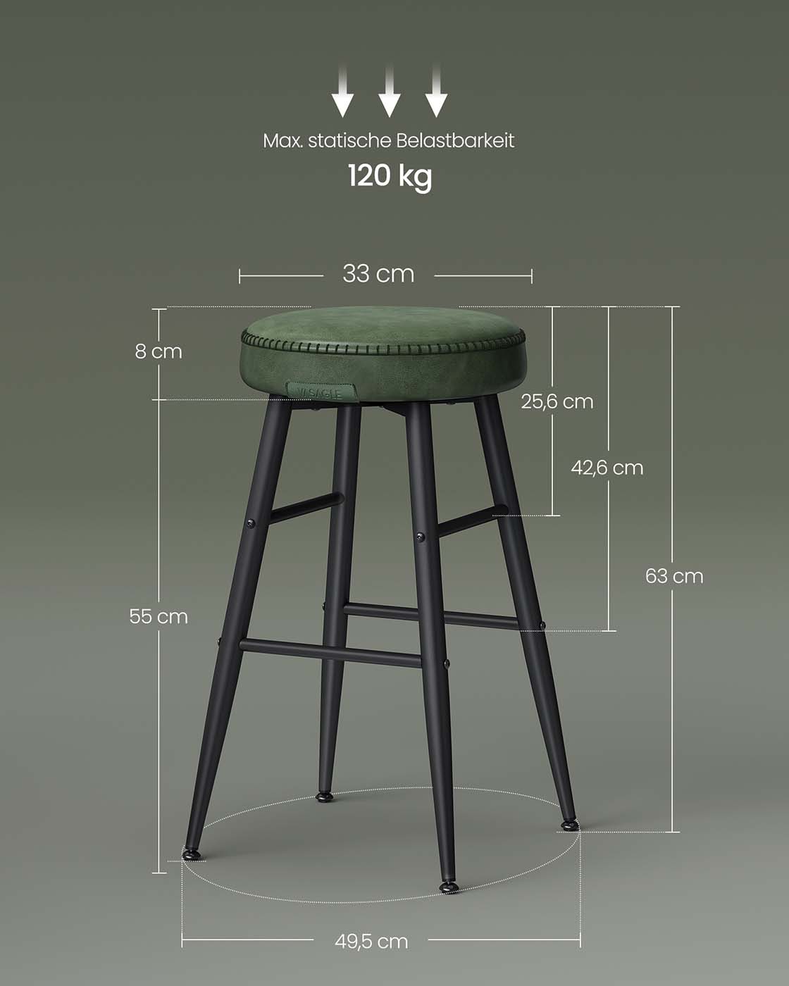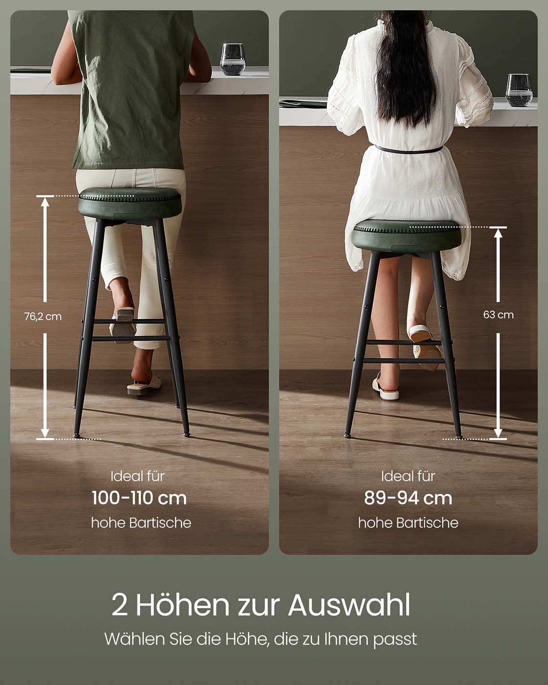 VASAGLE EKHO Collection – Bar Stool, Set of 4, Bar Chair, Kitchen Chair, Faux Leather, 63 cm High, for Kitchen, Dining Room, Easy Assembly Bar Stool