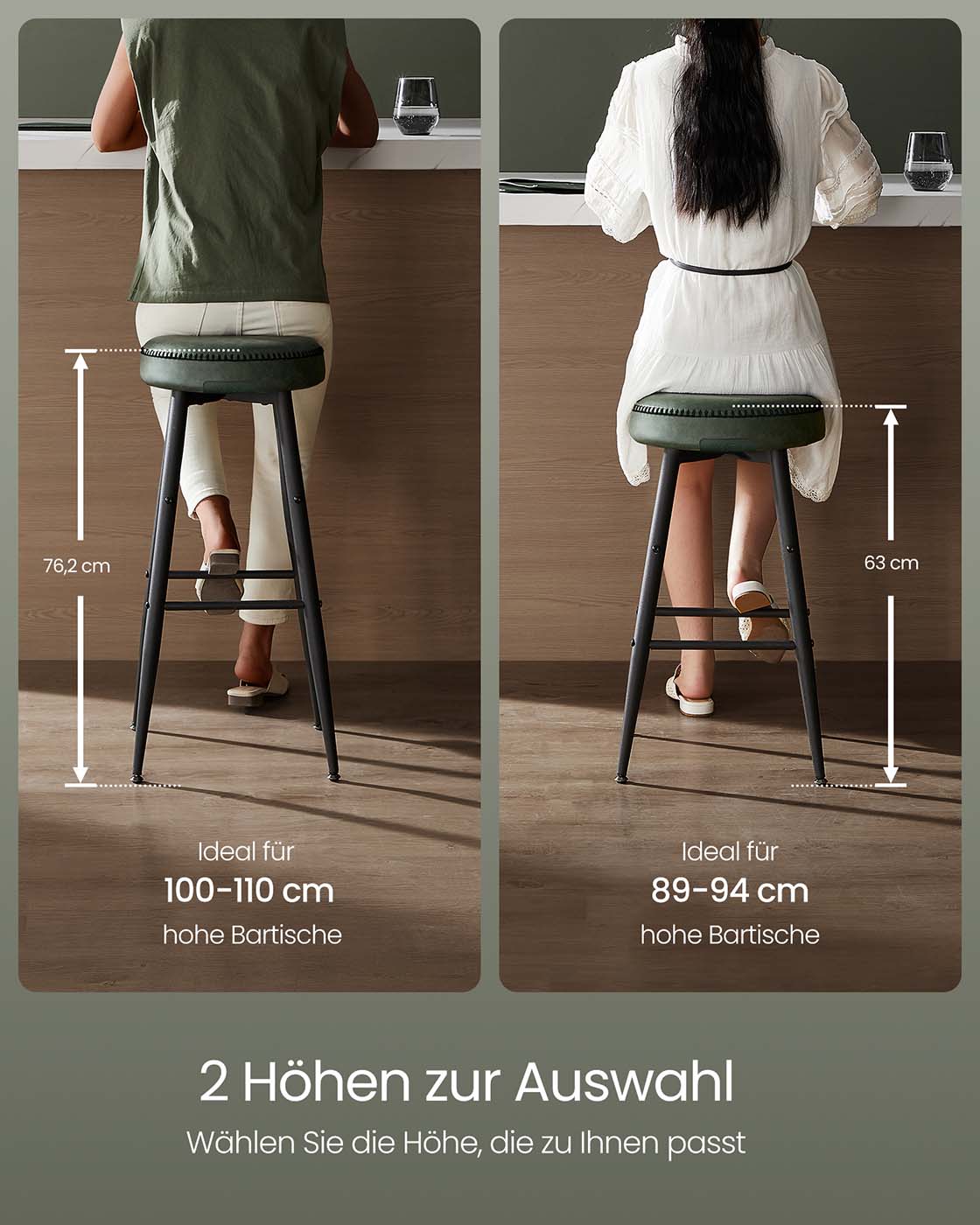 VASAGLE EKHO Collection – Bar Stool, Set of 4, Bar Chair, Kitchen Chair, Faux Leather, 63 cm High, for Kitchen, Dining Room, Easy Assembly Bar Stool