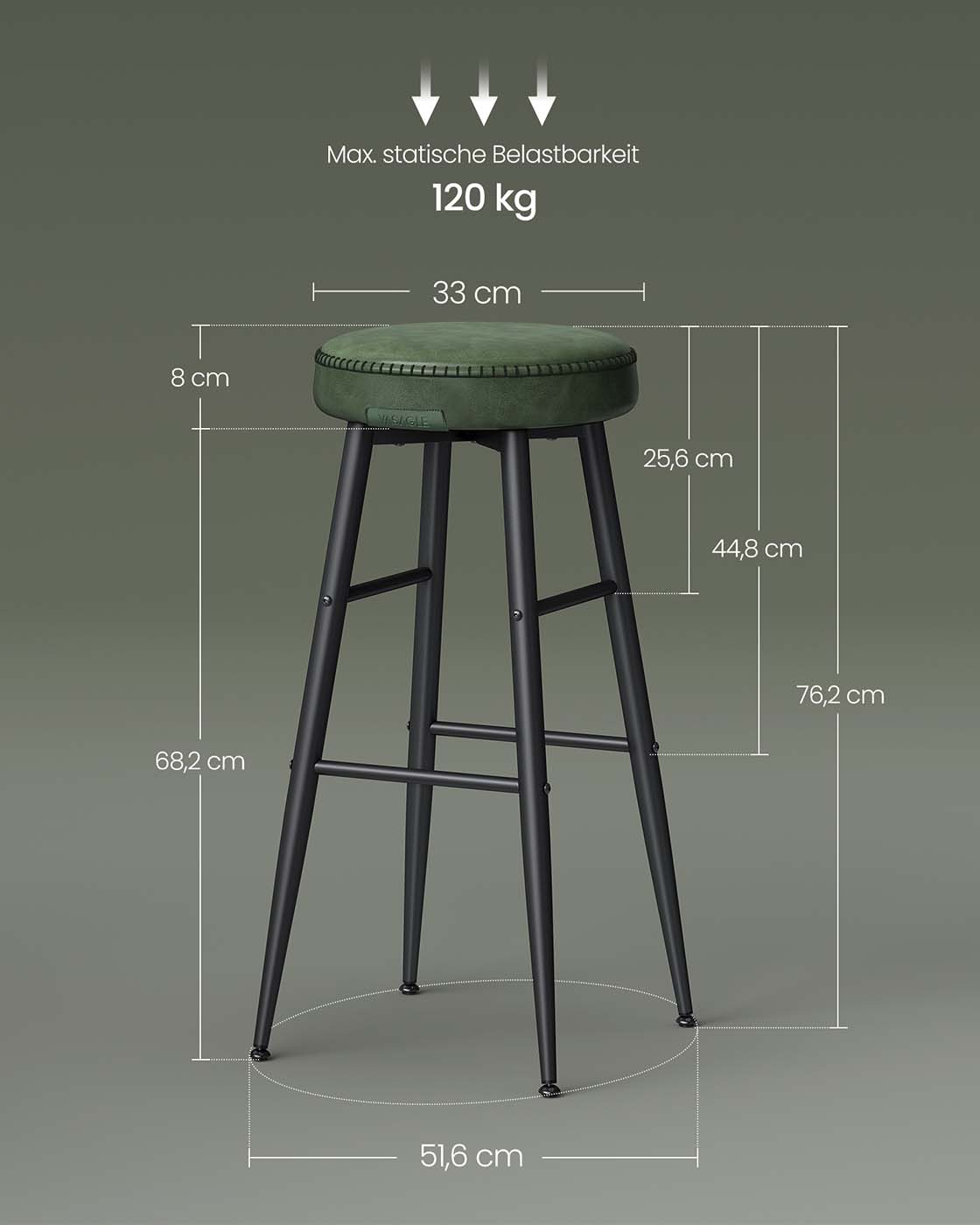 Max. static load capacity per stool: 120 kg