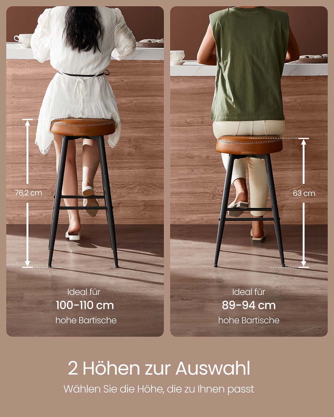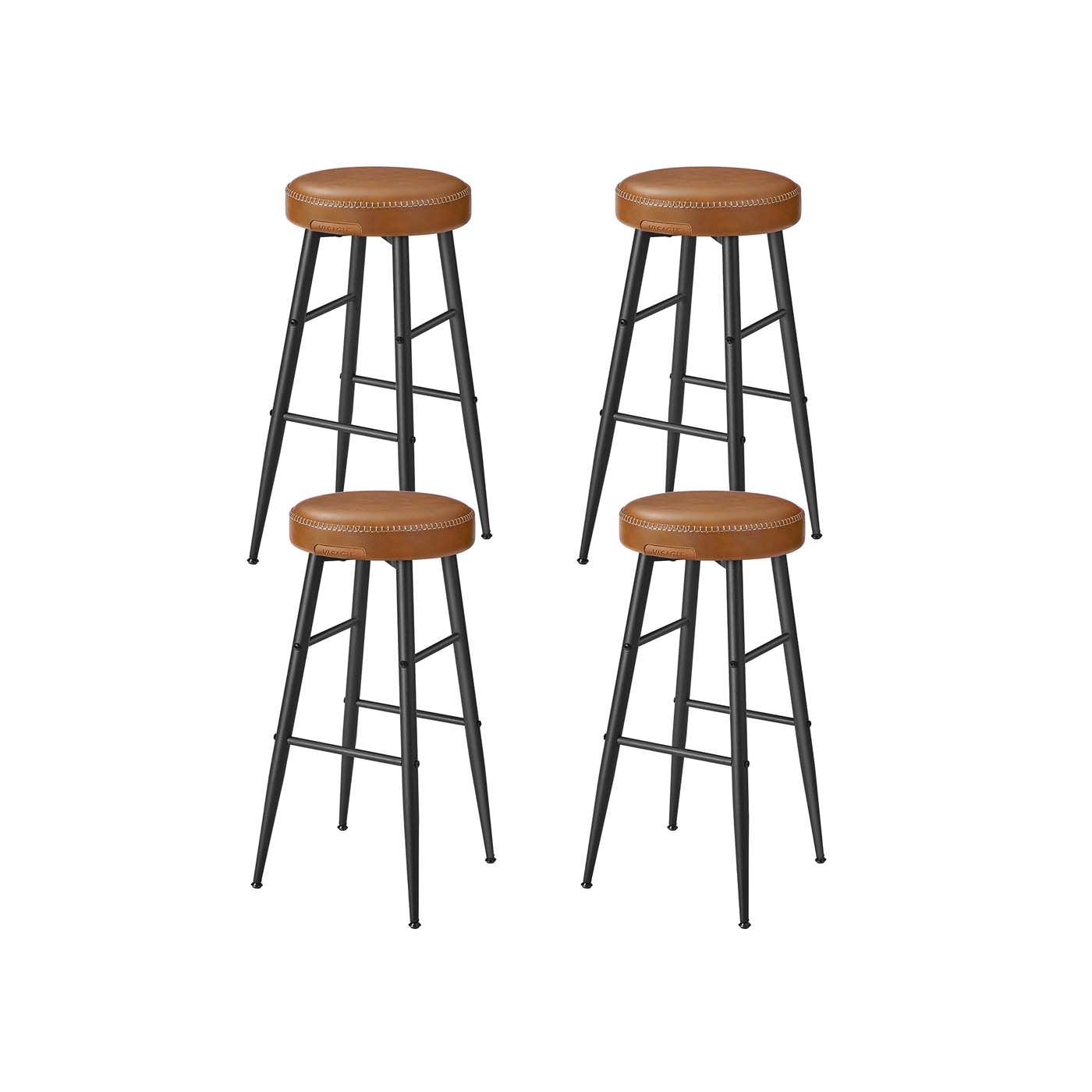 VASAGLE EKHO Collection – Bar Stool, Set of 4, Bar Chair, Kitchen Chair, Faux Leather, 63 cm High, for Kitchen, Dining Room, Easy Assembly Bar Stool