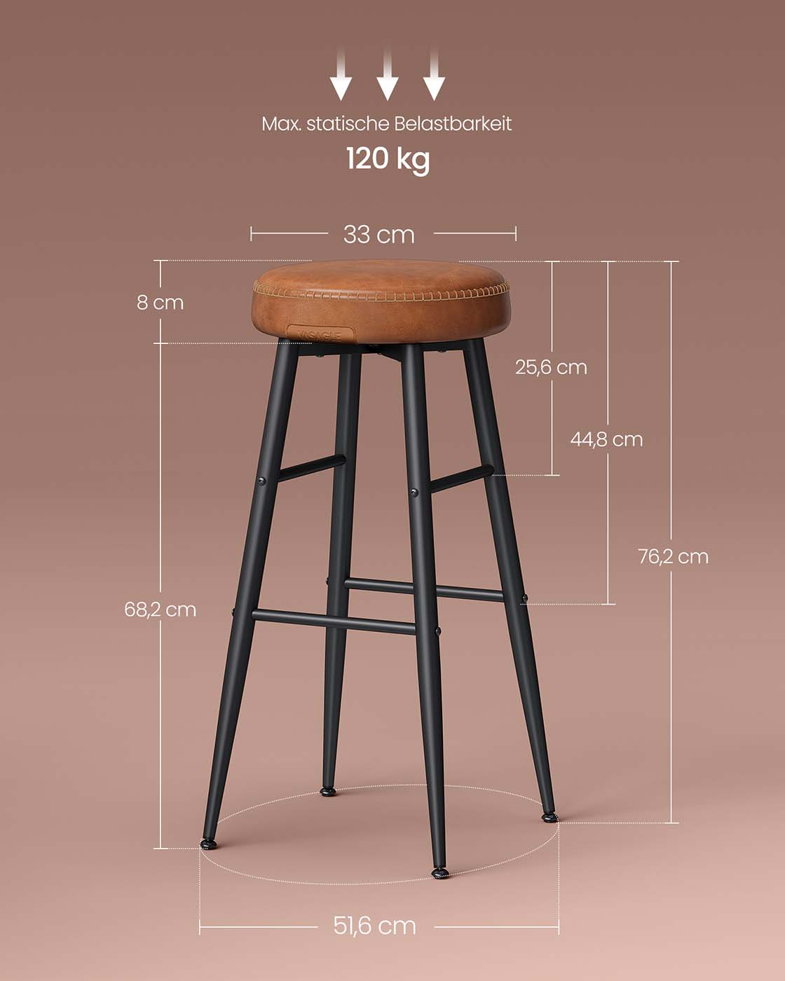 Max. static load capacity per stool: 120 kg