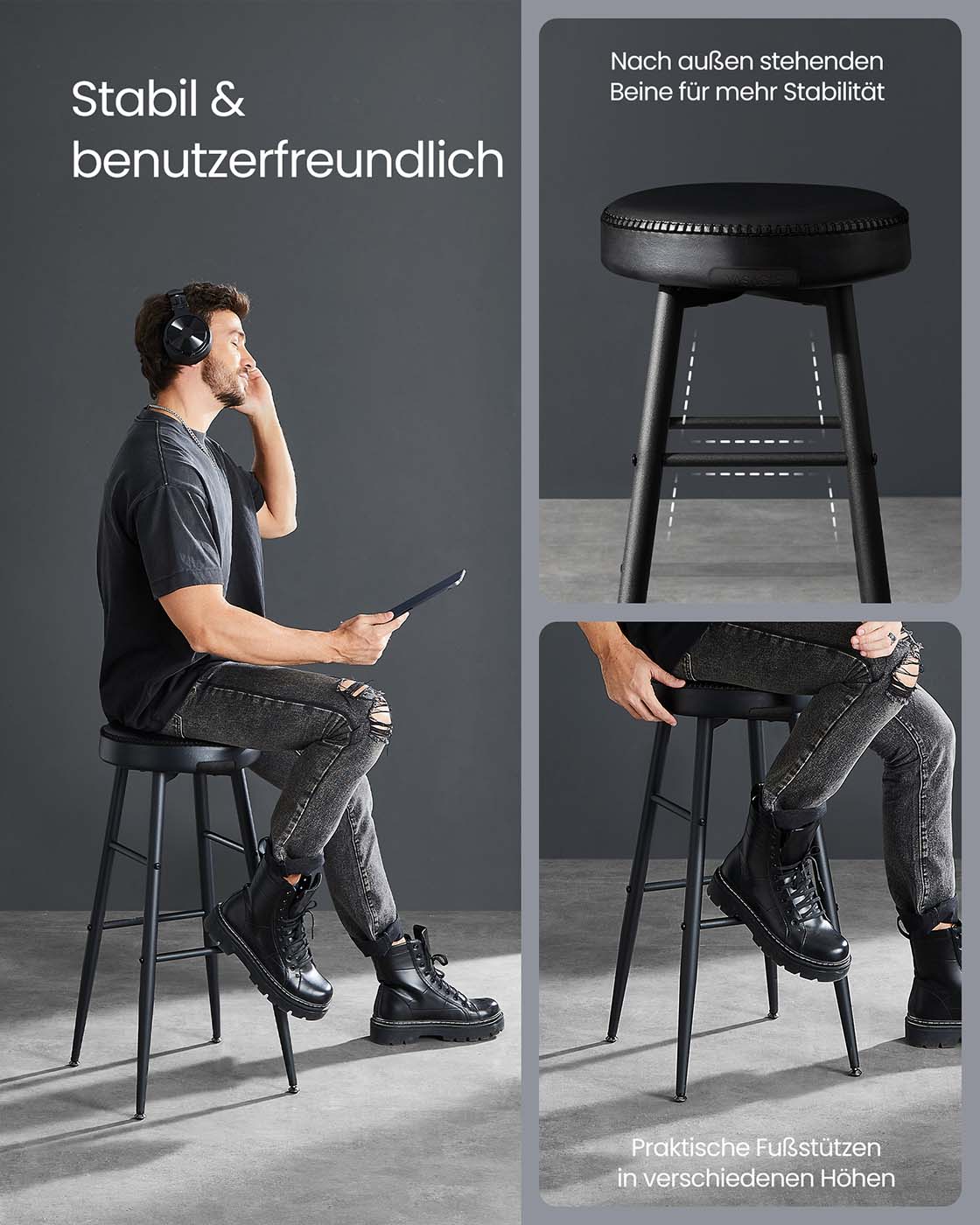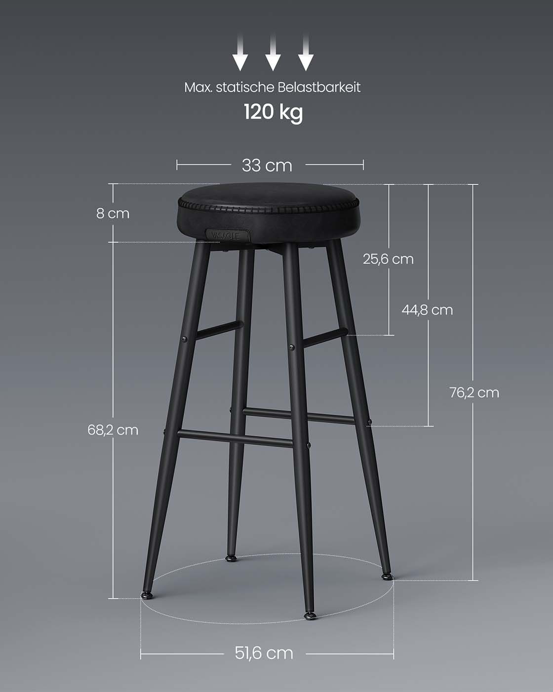 Max. static load capacity per stool: 120 kg