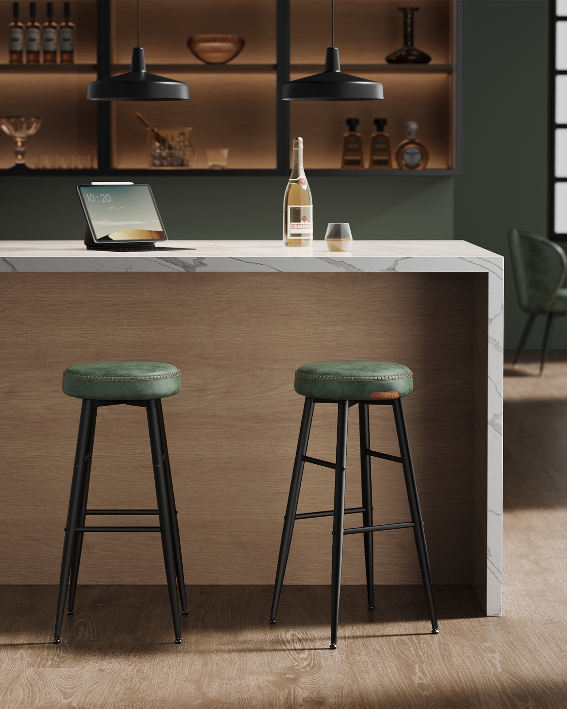 VASAGLE Echo Collection Bar Stool, Set of 2, Bar Chair, Kitchen Chair, Faux Leather, 76.2 cm high, for Kitchen, Dining Room, Easy Assembly