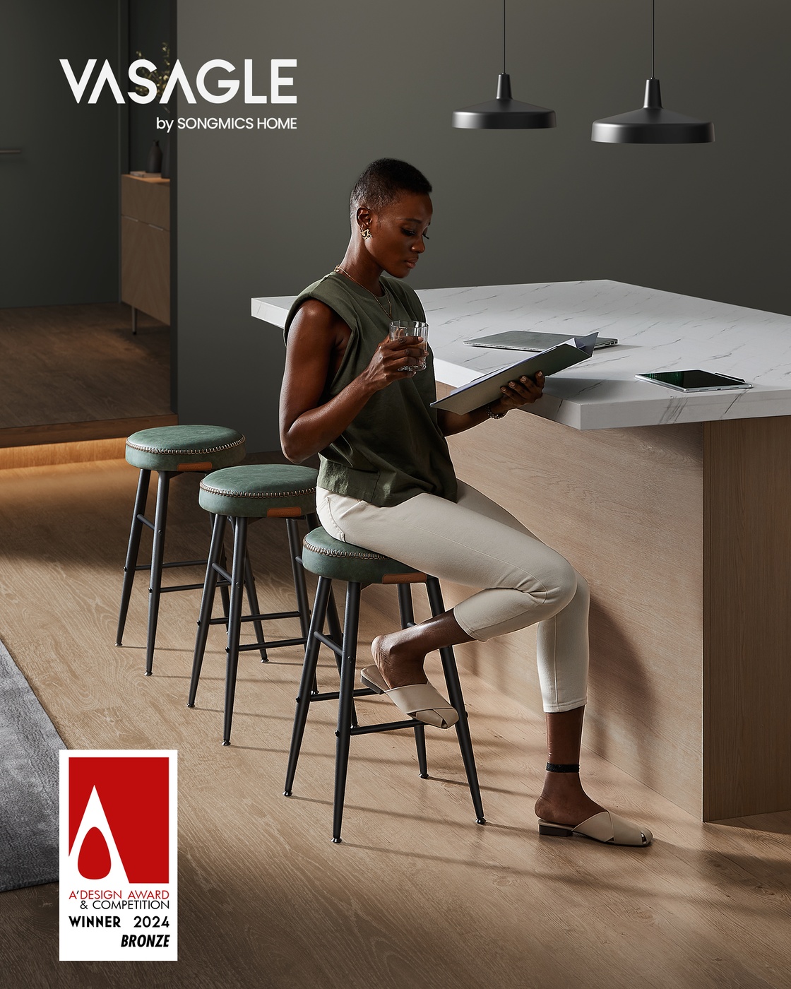 Be the first to review “VASAGLE EKHO Collection – Bar Stool Set of 2 Easy Assembly Forest Green”