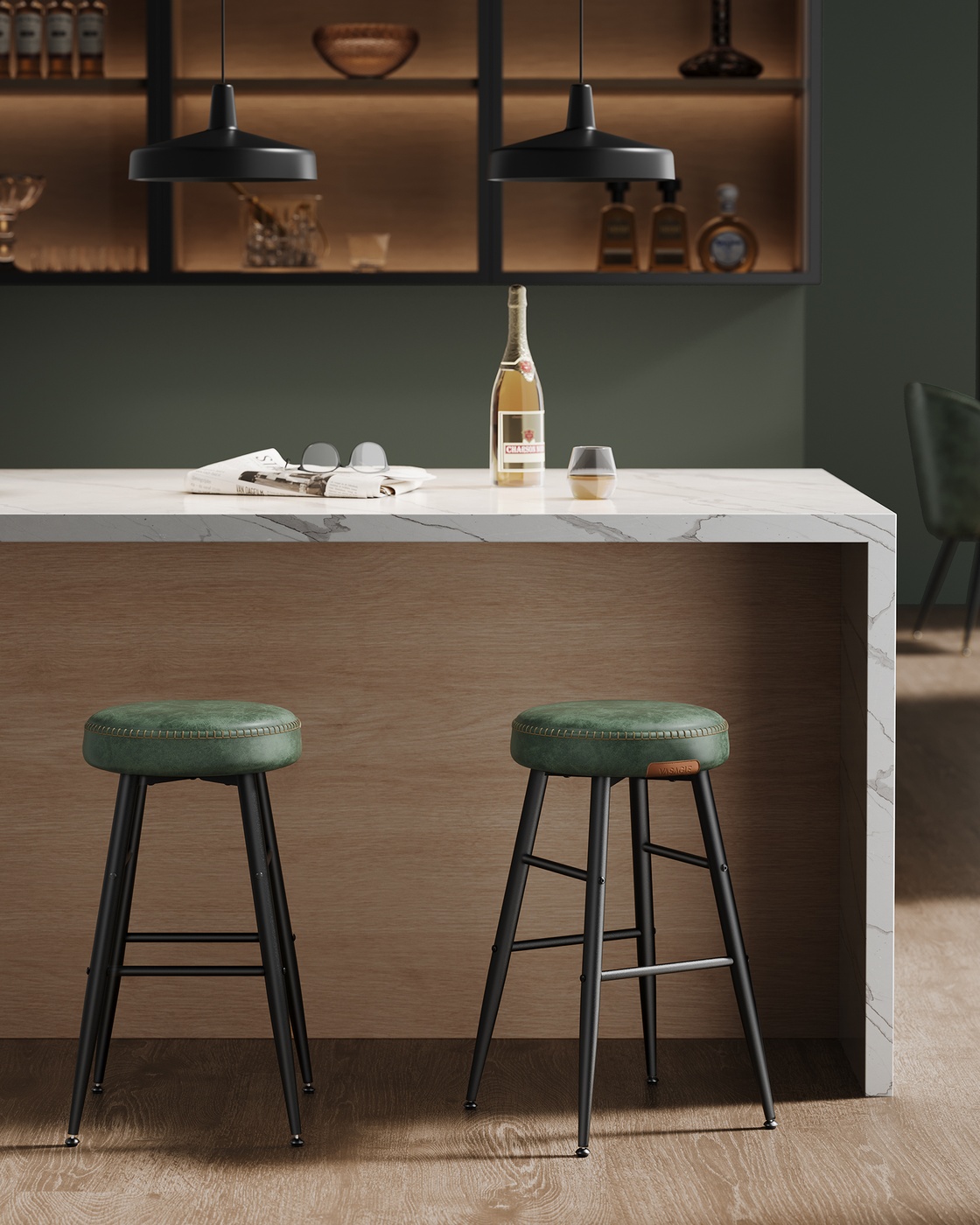 VASAGLE EKHO Collection – Bar Stool Set of 2 Easy Assembly Forest Green