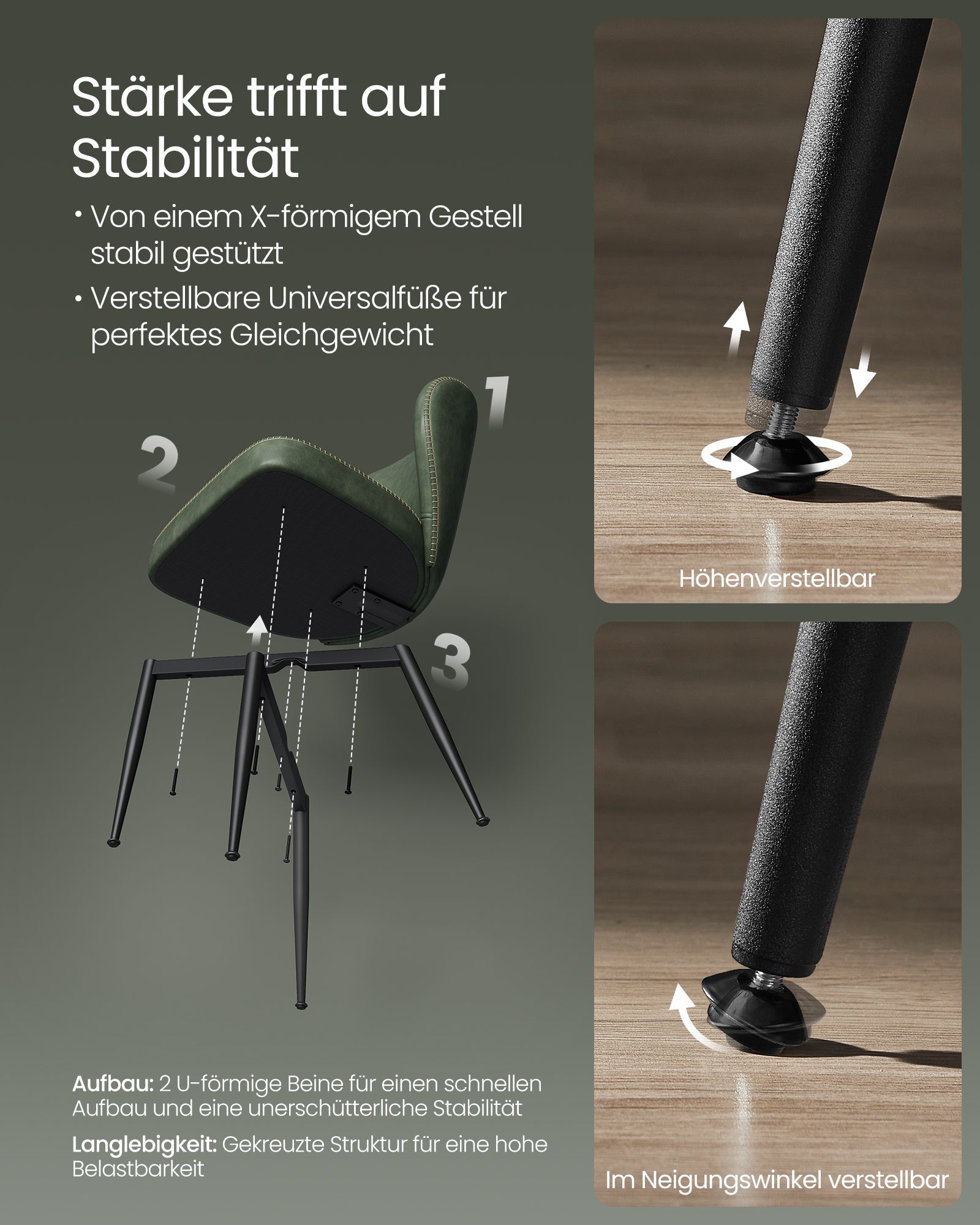 VASAGLE EKHO Collection – Dining Chairs Set of 2, Kitchen Chairs, Faux Leather, With Stitching, Mid-Century Modern Style, Easy Assembly, Lounge, Restaurant