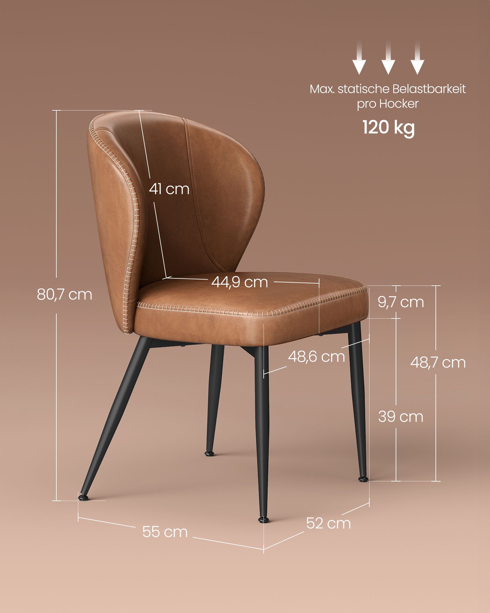 VASAGLE EKHO Collection – Dining Chairs Set of 2, Kitchen Chairs, Faux Leather, With Stitching, Mid-Century Modern Style, Easy Assembly, Lounge, Restaurant