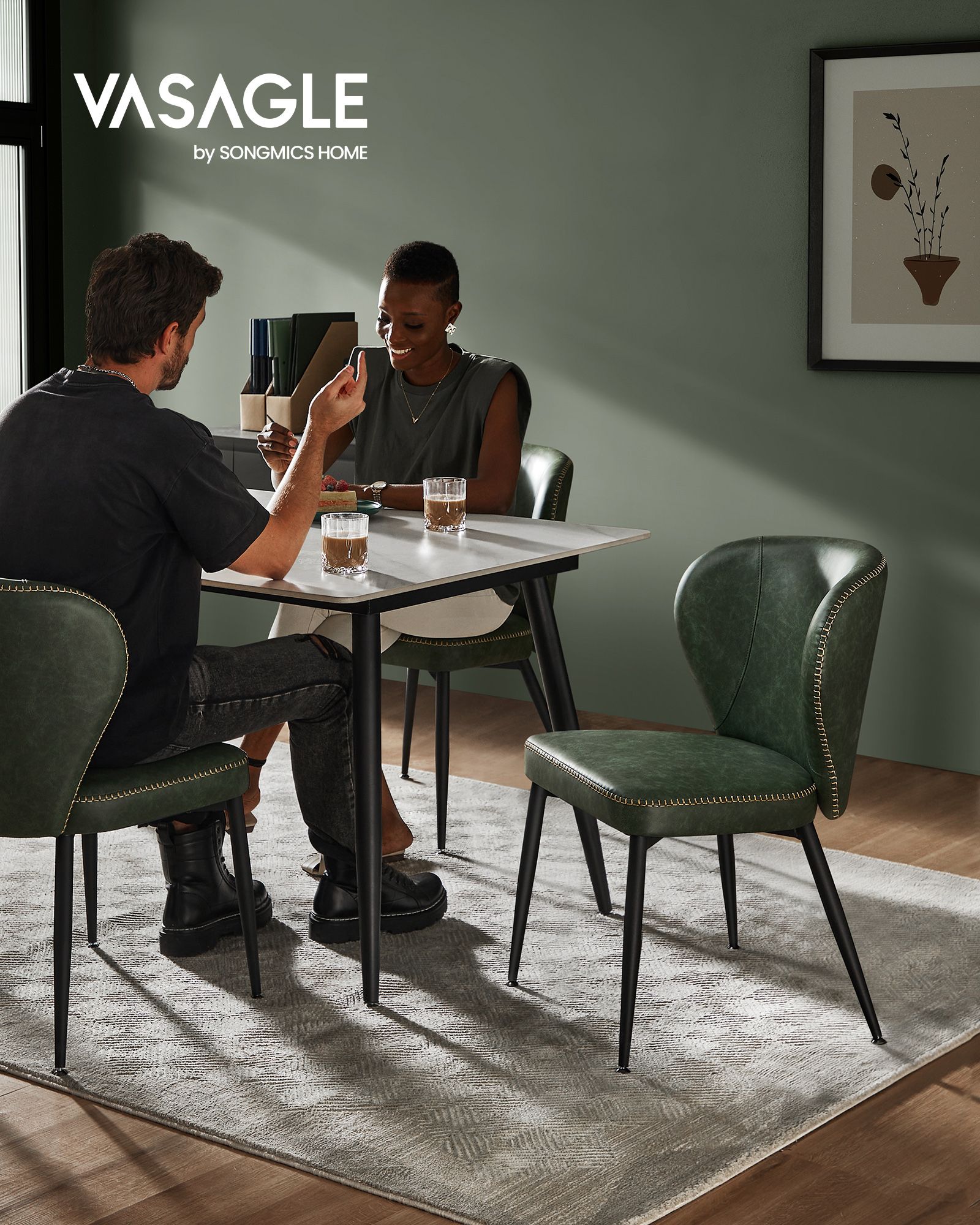 VASAGLE EKHO Collection – Dining Chairs Set of 2, Kitchen Chairs, Faux Leather, With Stitching, Mid-Century Modern Style, Easy Assembly, Lounge, Restaurant