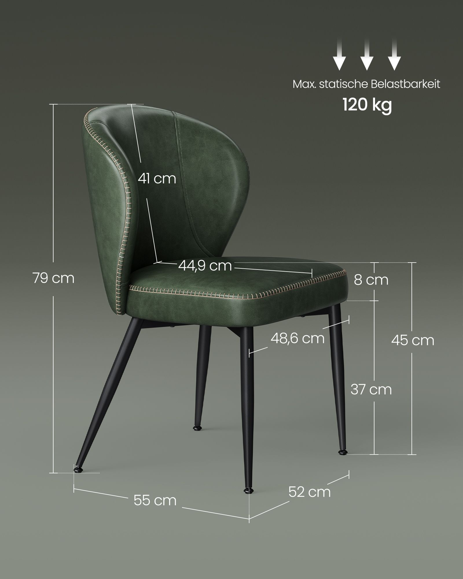 – Max. static load capacity per chair: 120 kg