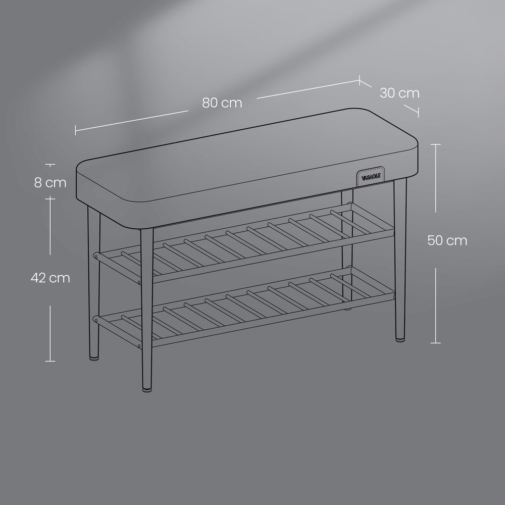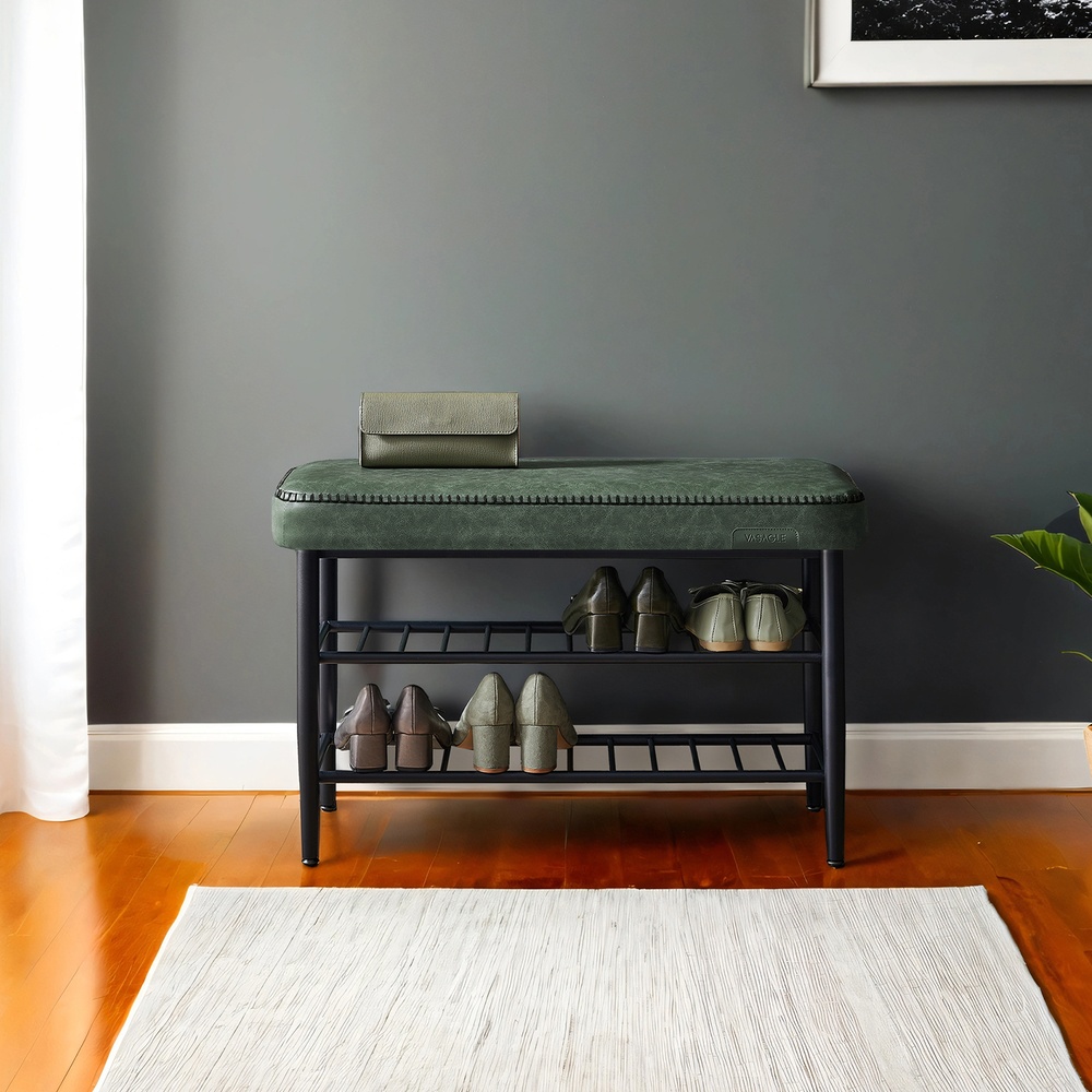 VASAGLE EKHO Collection – Shoe bench, bench, storage bench, entryway, faux leather, stitching, 60s style, modern, load capacity up to 135 kg, 30 x 80 x 50 cm, forest green LSB054C01