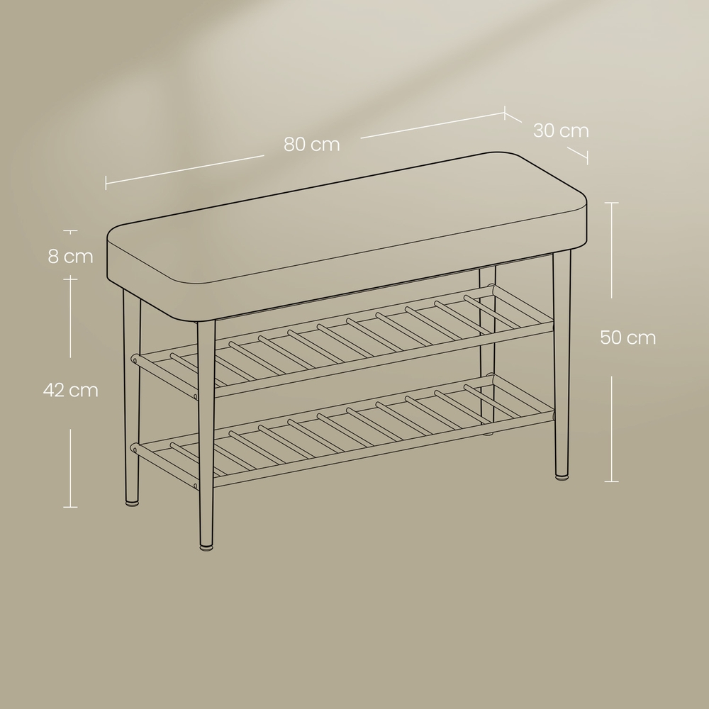 VASAGLE EKHO Collection – Shoe bench, bench, storage bench, entryway, faux leather, stitching, 60s style, modern, load capacity up to 135 kg, 30 x 80 x 50 cm, forest green LSB054C01