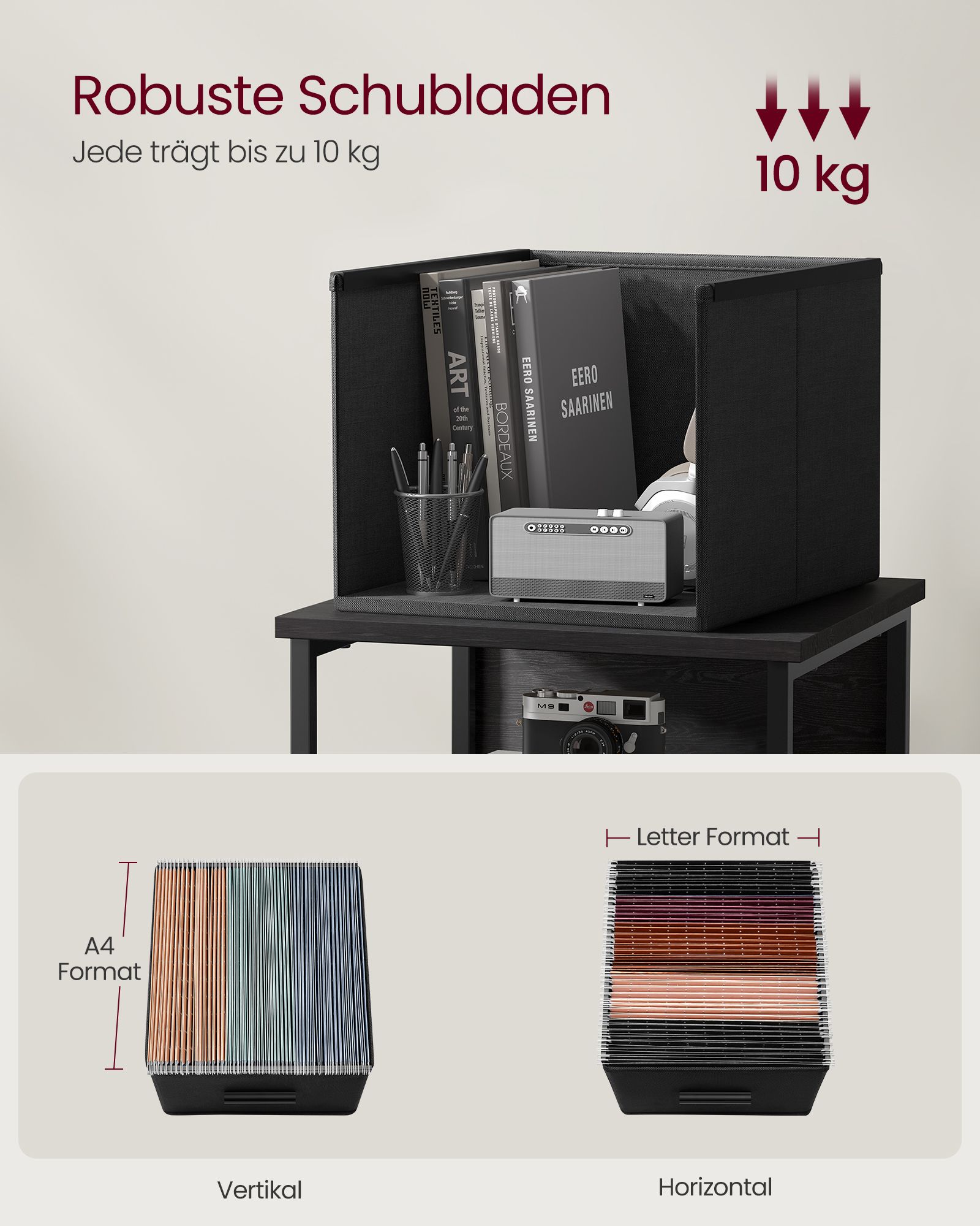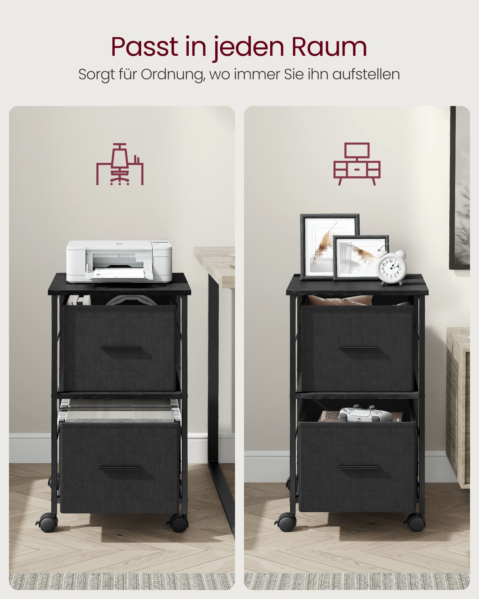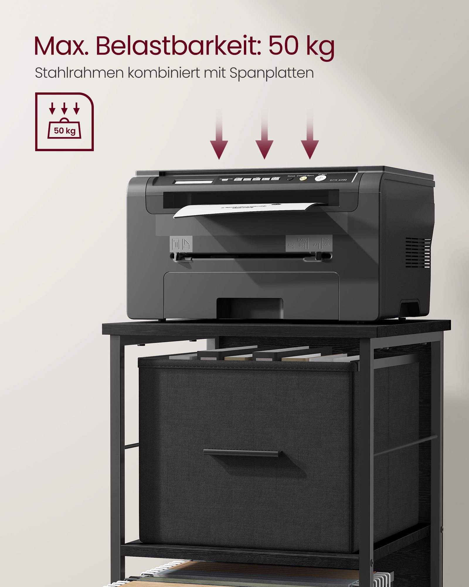 VASAGLE filing cabinet with 2 drawers, printer stand, for A4 and letter formats, hanging file system, storage box, home office