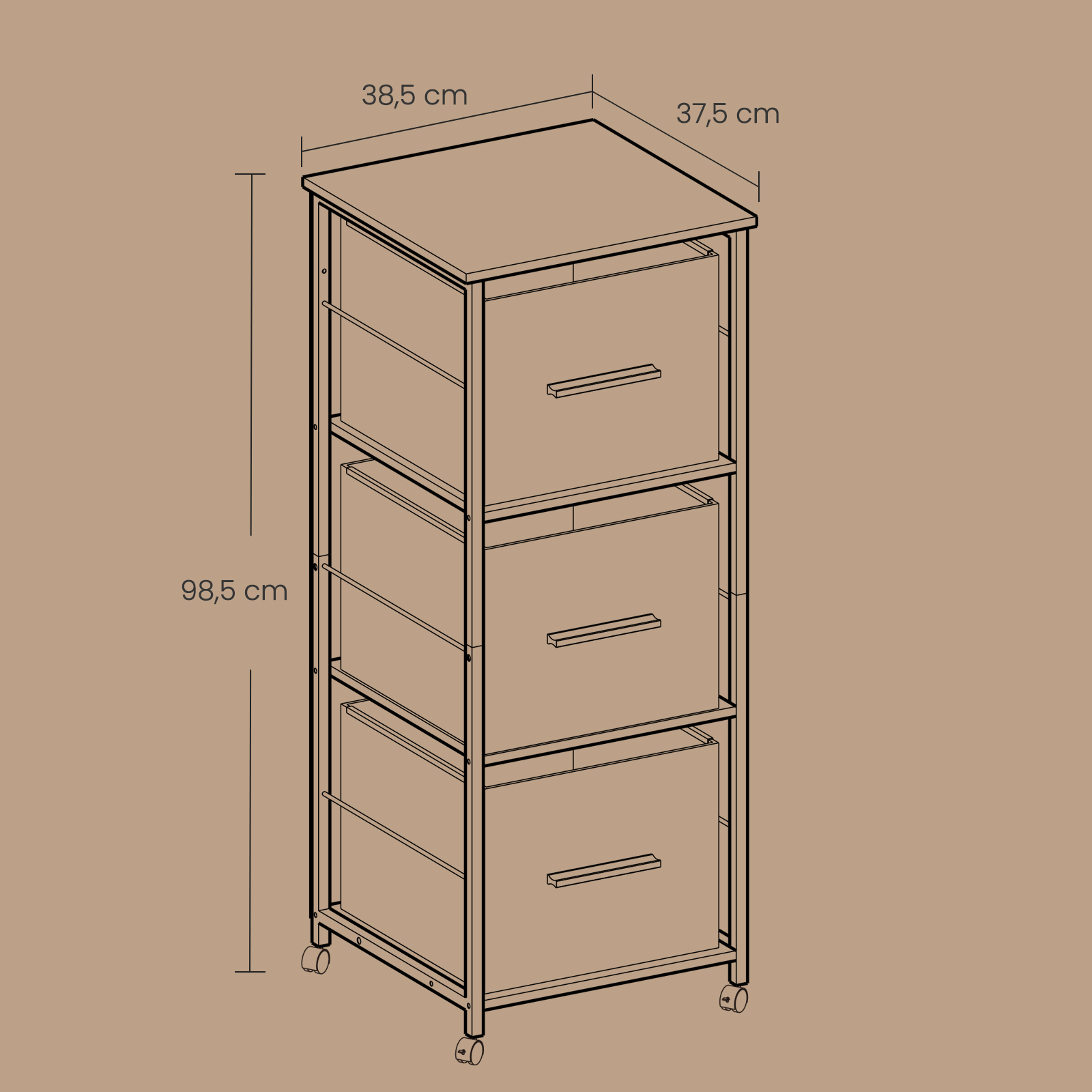 VASAGLE 3-drawer filing cabinet, printer stand, for A4, letter format, hanging files, storage box, home office